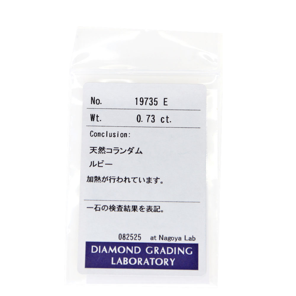 | 重さ | 総重量約:約5.3g ルビー:0.73ct ダイヤモンド:0.20ct |