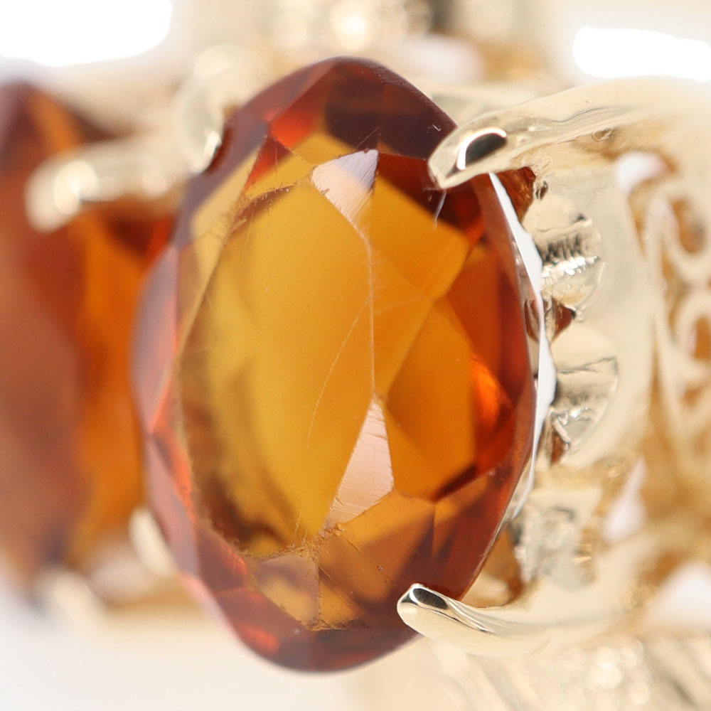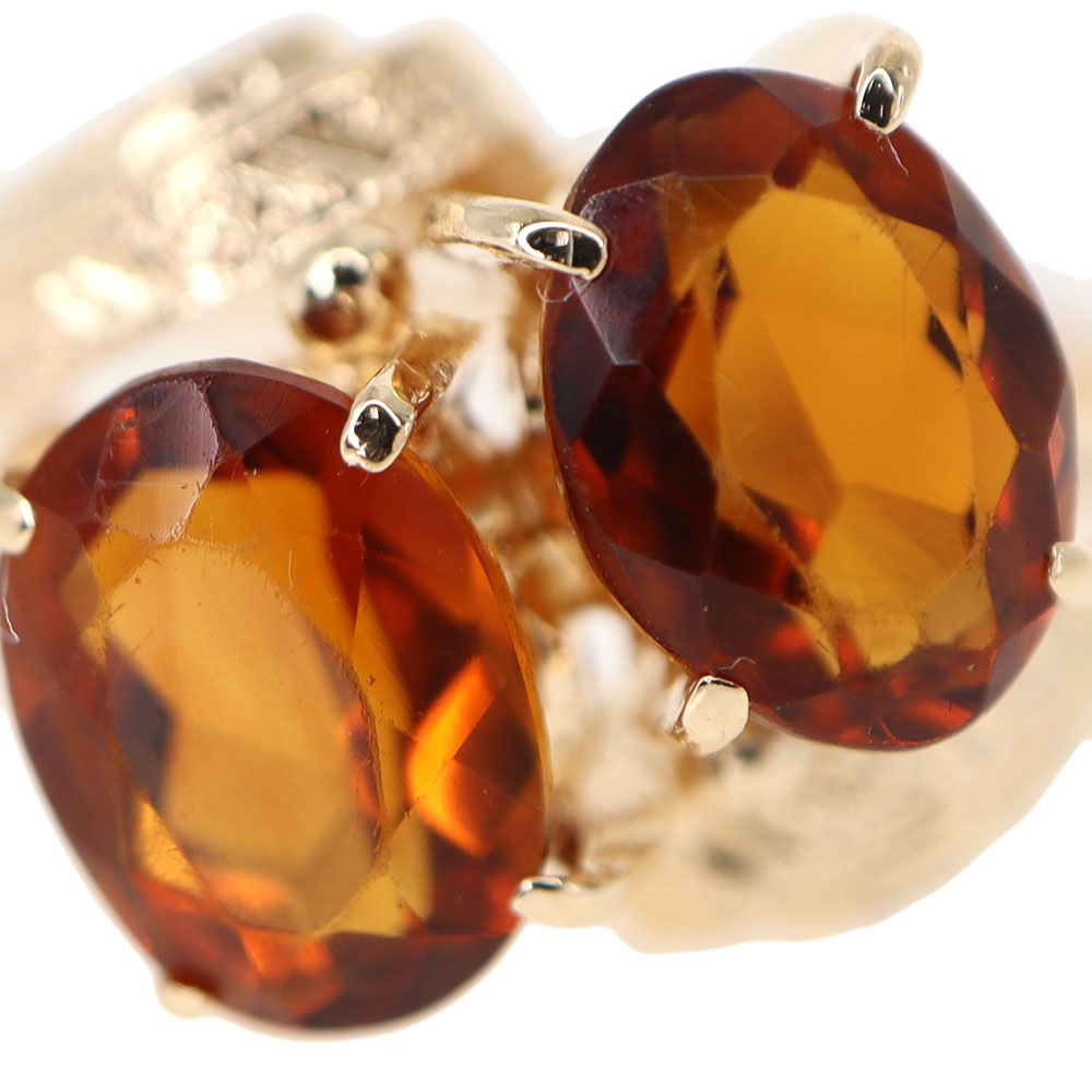 シトリンが二石並んだ印象的なデザインです。 深いオレンジ色は肌なじみもよくコーディネートしやすいアイテムです。 お探しの方はこの機会に是非いかがでしょうか。