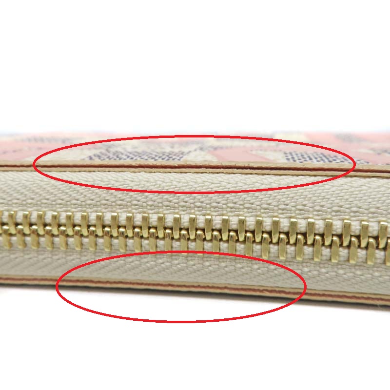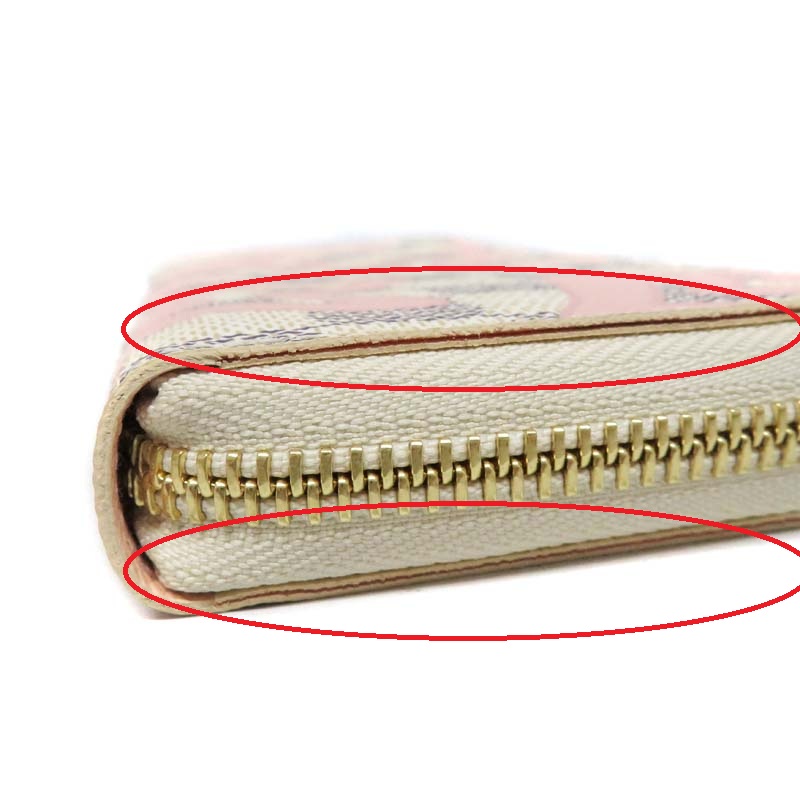 ダミエ・アズールキャンバスに、ルイヴィトンのアーカイヴから着想を得たモノグラムプリントを組み合わせたラウンドファスナー長財布です。