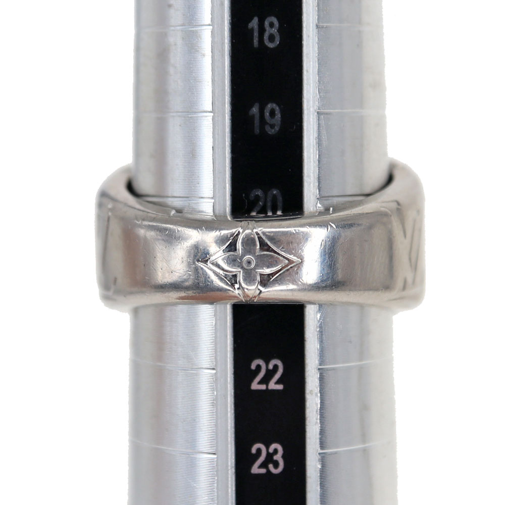 印台リングのような重量感あるリングにLVのロゴが刻印されています。 サイドにはモノグラムフラワーなどもデザインされているので、どこから見てもヴィトンらしさがあります。