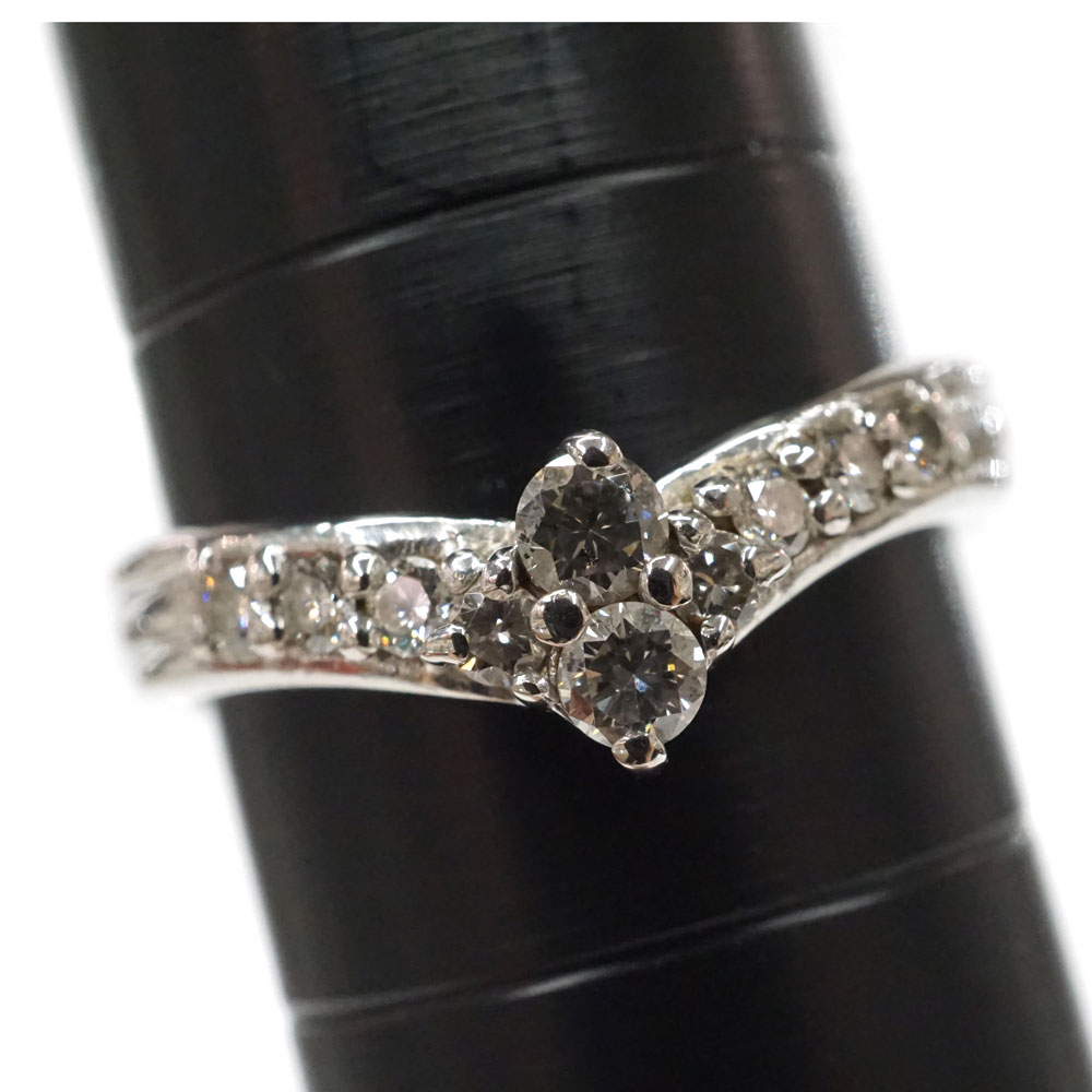 ダイヤが0.35ct分セッティングされた煌びやかなリングです。 シンプルながらに華やかさがございます。 お手元のアクセントにいかがでしょうか。