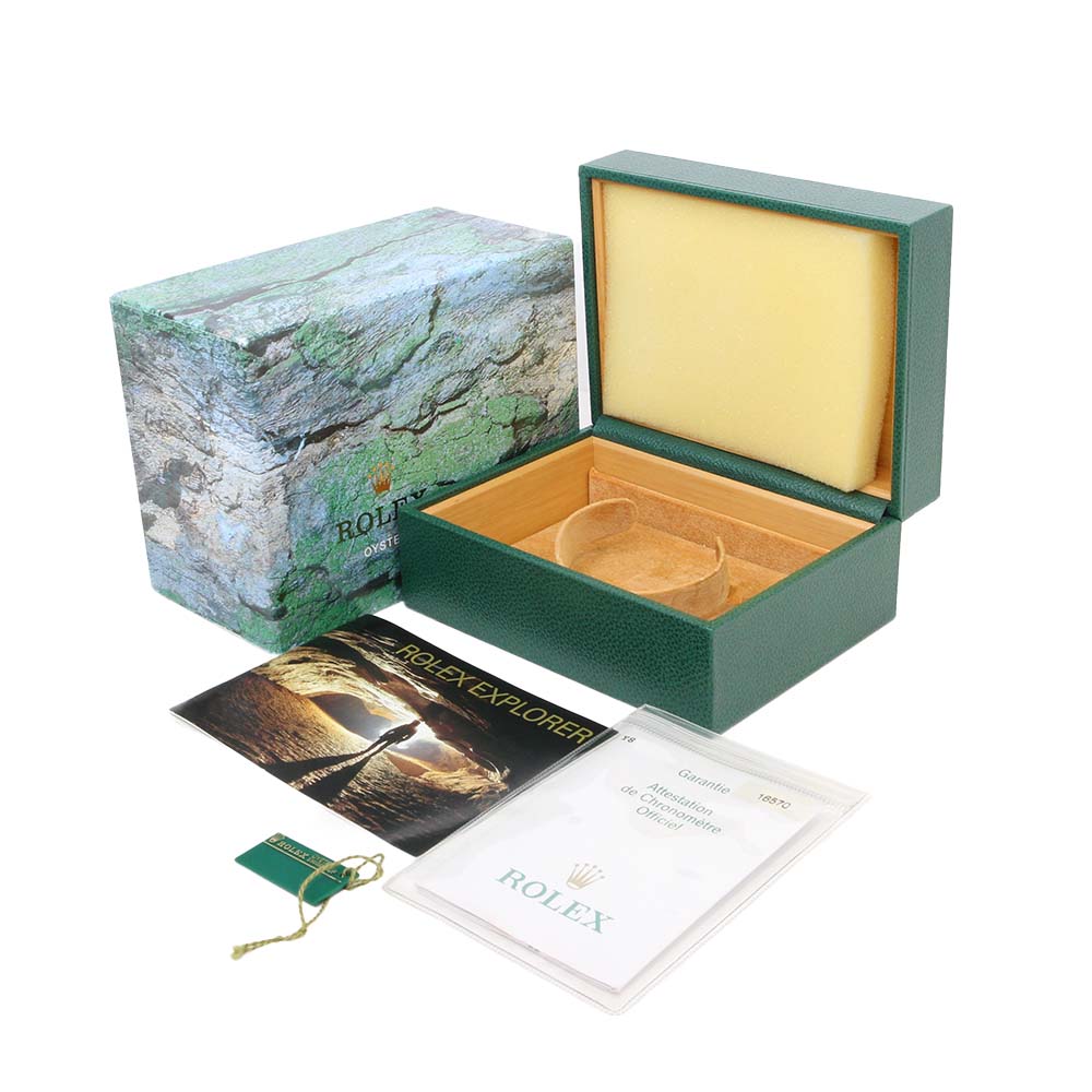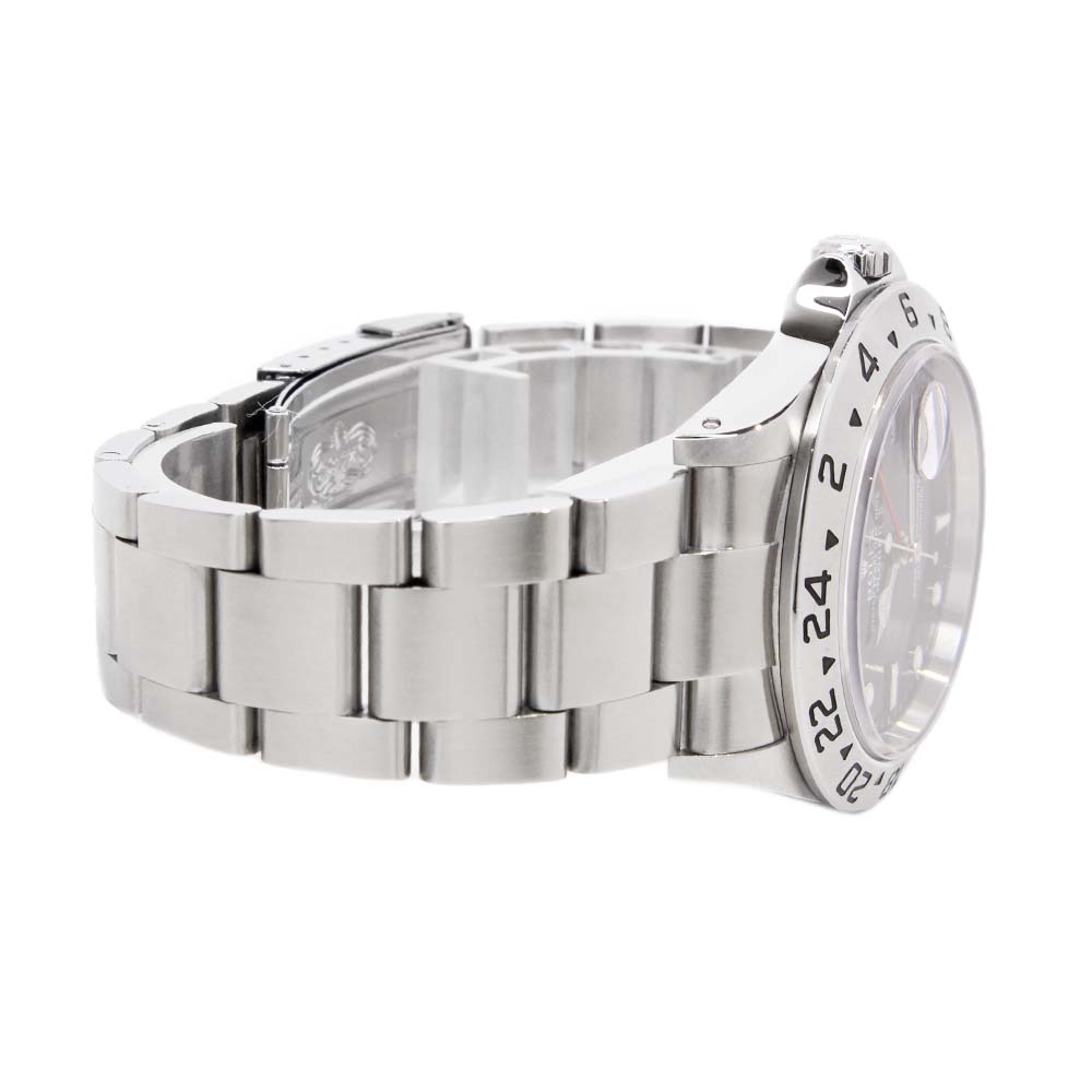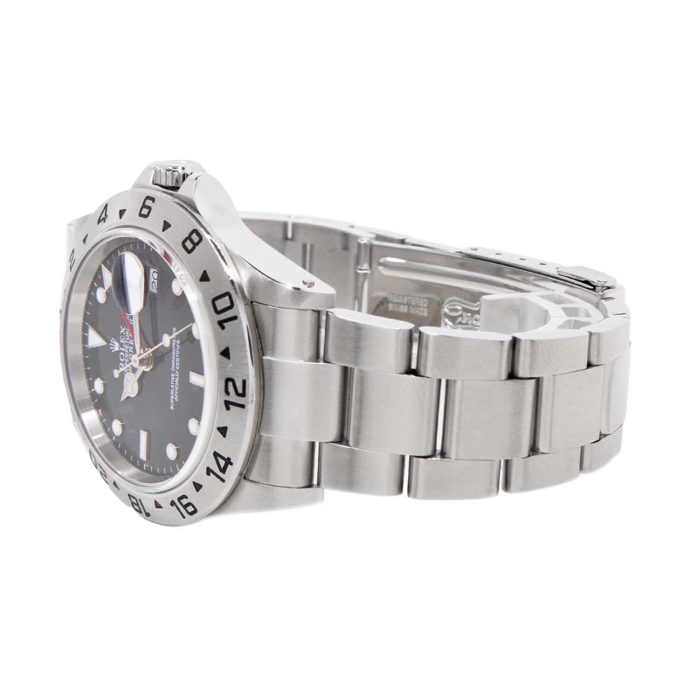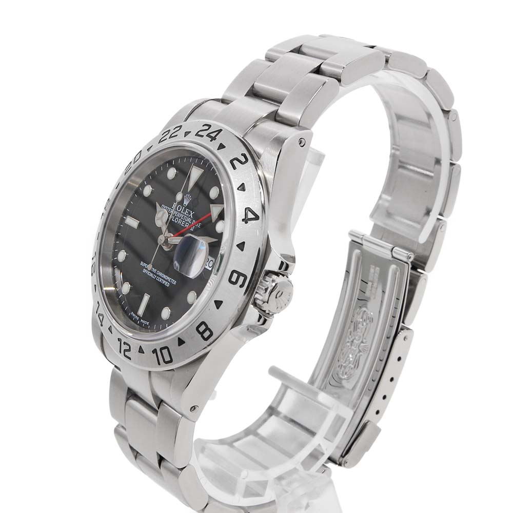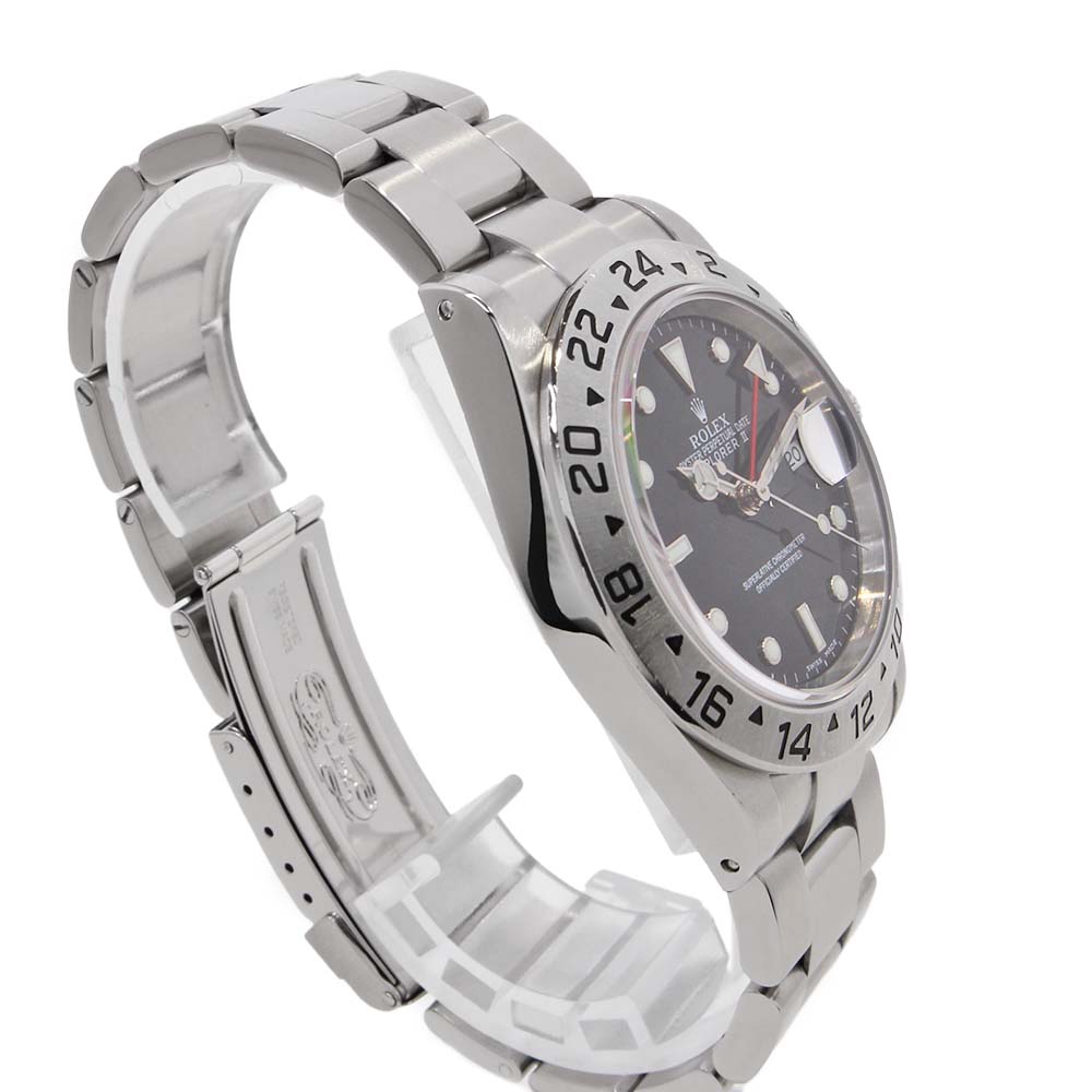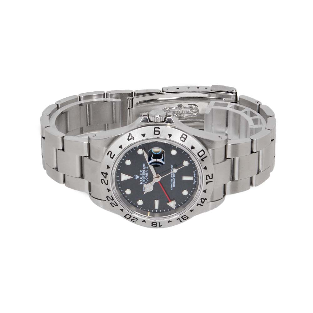 商品説明 | ロレックスのエクスプローラーII Ref.16570は、1991年から2011年まで約20年間生産されたロングセラーモデルです。このモデルは、洞窟探検家や極地探検家向けに設計され、24時間表示の固定ベゼルと独立可動する24時間針を備え、昼夜の判別が難しい環境でも時間を正確に把握できます。ケースサイズは40mmで、文字盤カラーはブラックとホワイトの2種類が存在します。ムーブメントは初期にCal.3185を搭載し、2007年頃からは耐磁性と耐衝撃性が向上したCal.3186に変更されています。