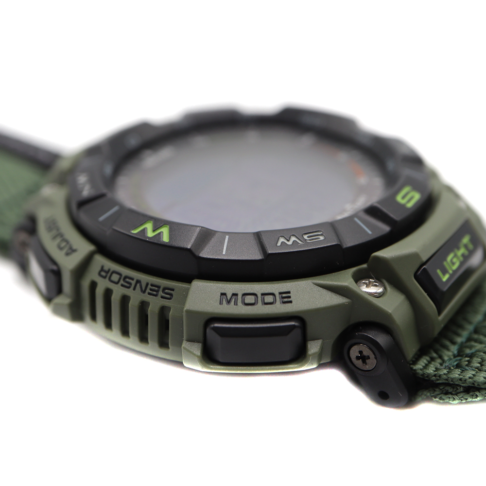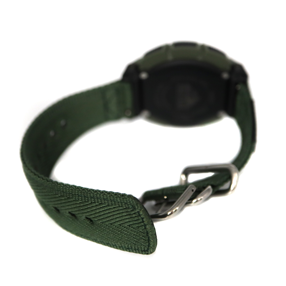 素材 | ケース:樹脂 ブレス:難燃クロスバンド ダイヤル:グリーン/ブラック ガラス:無機ガラス |