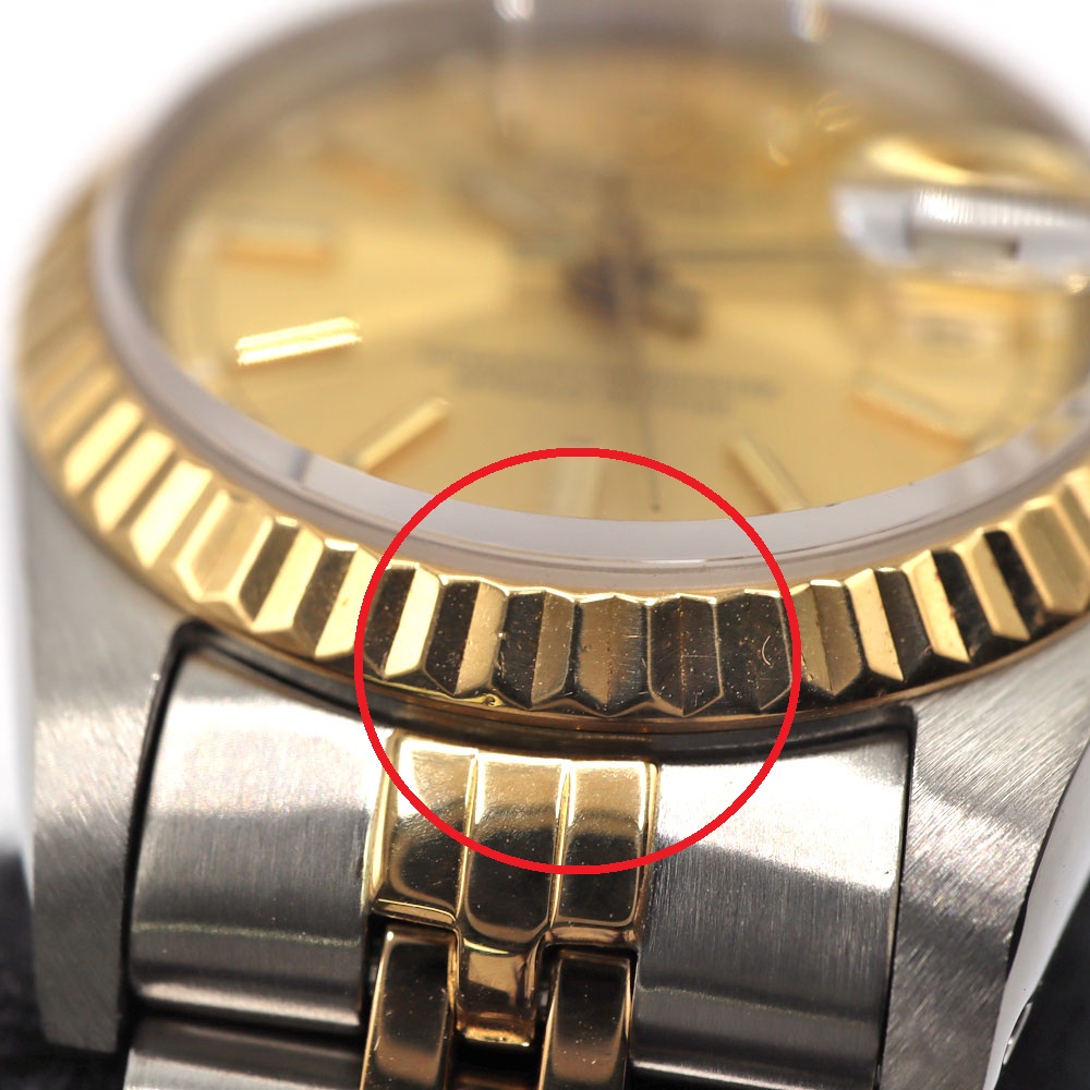デイトジャストとは午前0時頃瞬時に日付が変わるデイトジャスト機構、全回転式ローターを搭載したパーペチュアル機構、ロレックス三大機構を搭載したモデルです。 シャンパンの文字盤が非常に上品で高級感があります。
