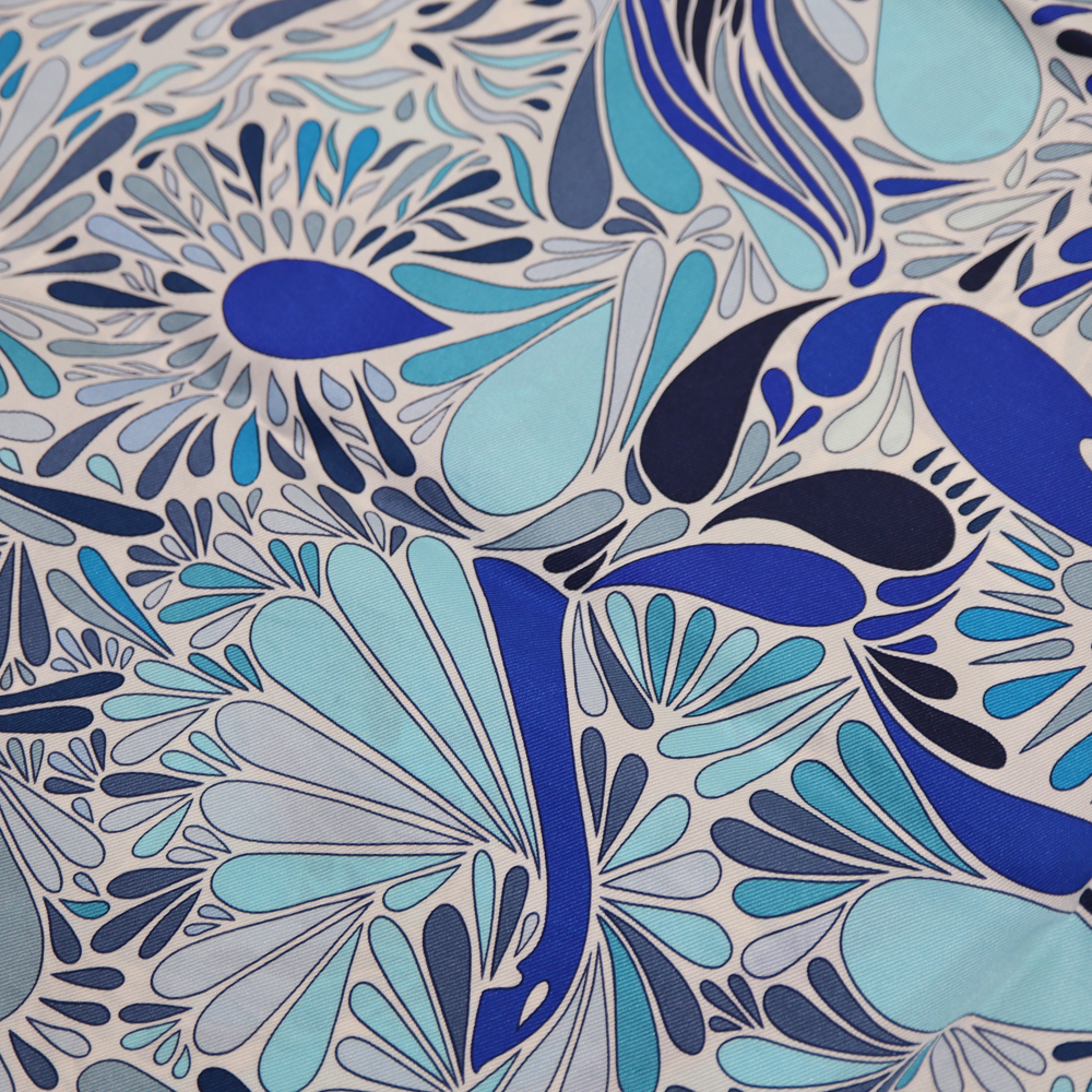 商品説明 | HERMES【エルメス】のカレのご紹介です。 ペイズリーやしずくのようにも見える「メキシコの花」が描かれた爽やかなデザインです。 |