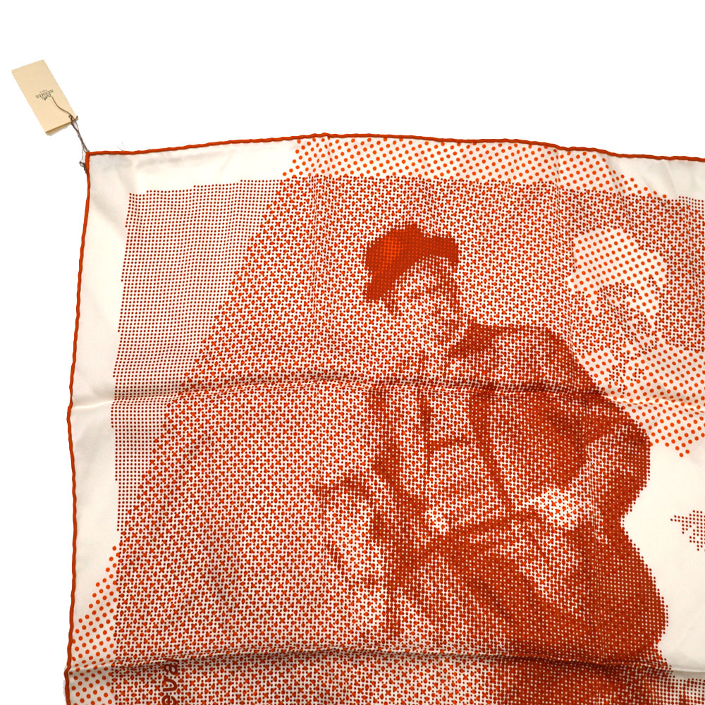 馬に乗ったデザインはドットでで構成されています。 エルメスらしいオレンジカラーが印象的。 首に巻いたりバッグに着けてアクセントに。 お探しの方はこの機会に是非いかがでしょうか。
