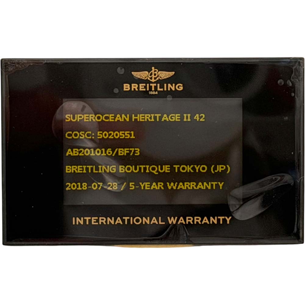 商品説明 | ブライトリングのスーパーオーシャン ヘリテージ 2 42mm(モデル番号: AB201016/BF73)は、クラシックなデザインとモダンなテクノロジーを融合したダイバーズウォッチです。レトロなスタイルを保ちつつ、耐久性に優れた素材を使用し、防水性能があります。高精度な自動巻きムーブメントを搭載しています。