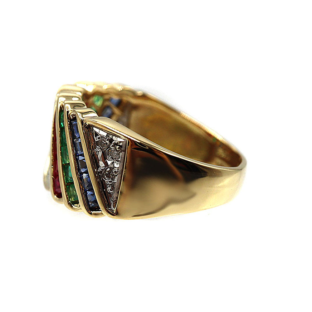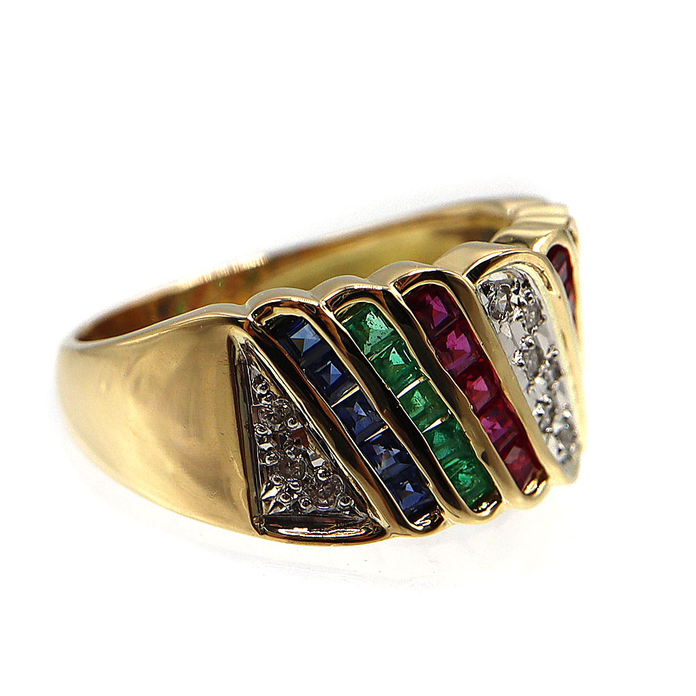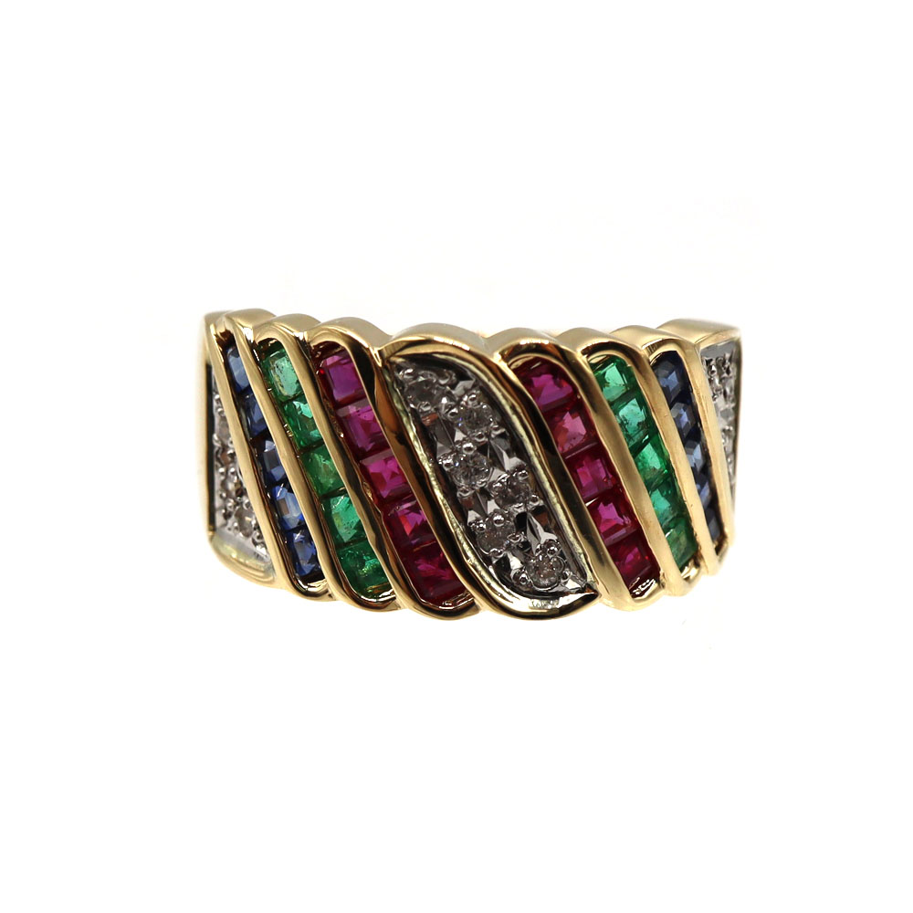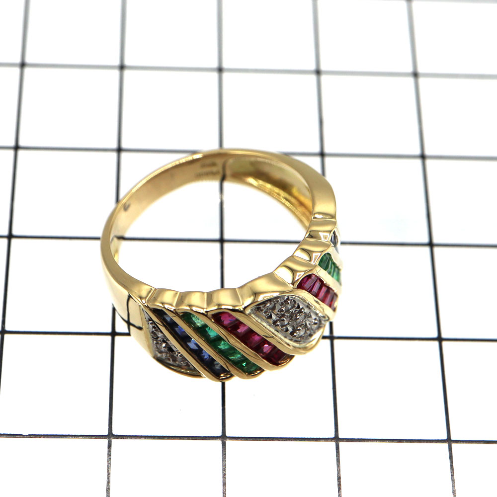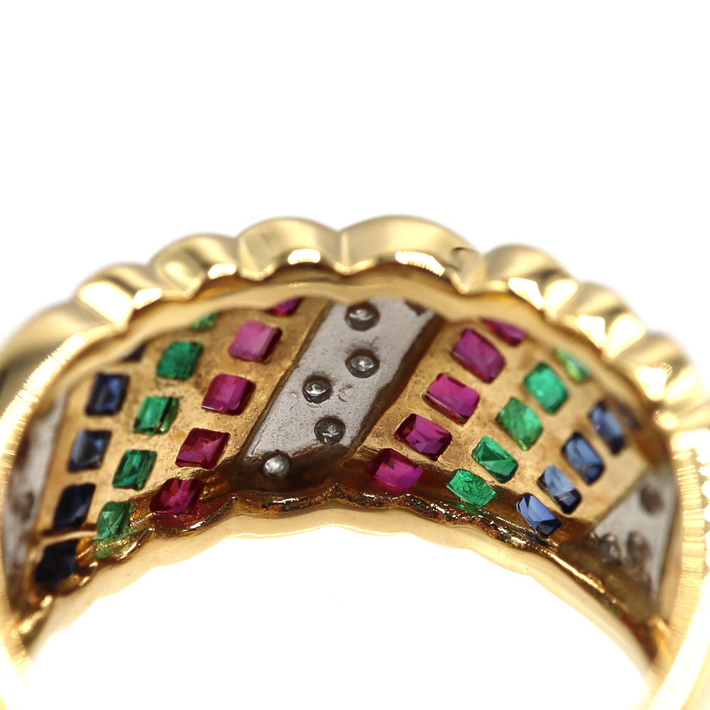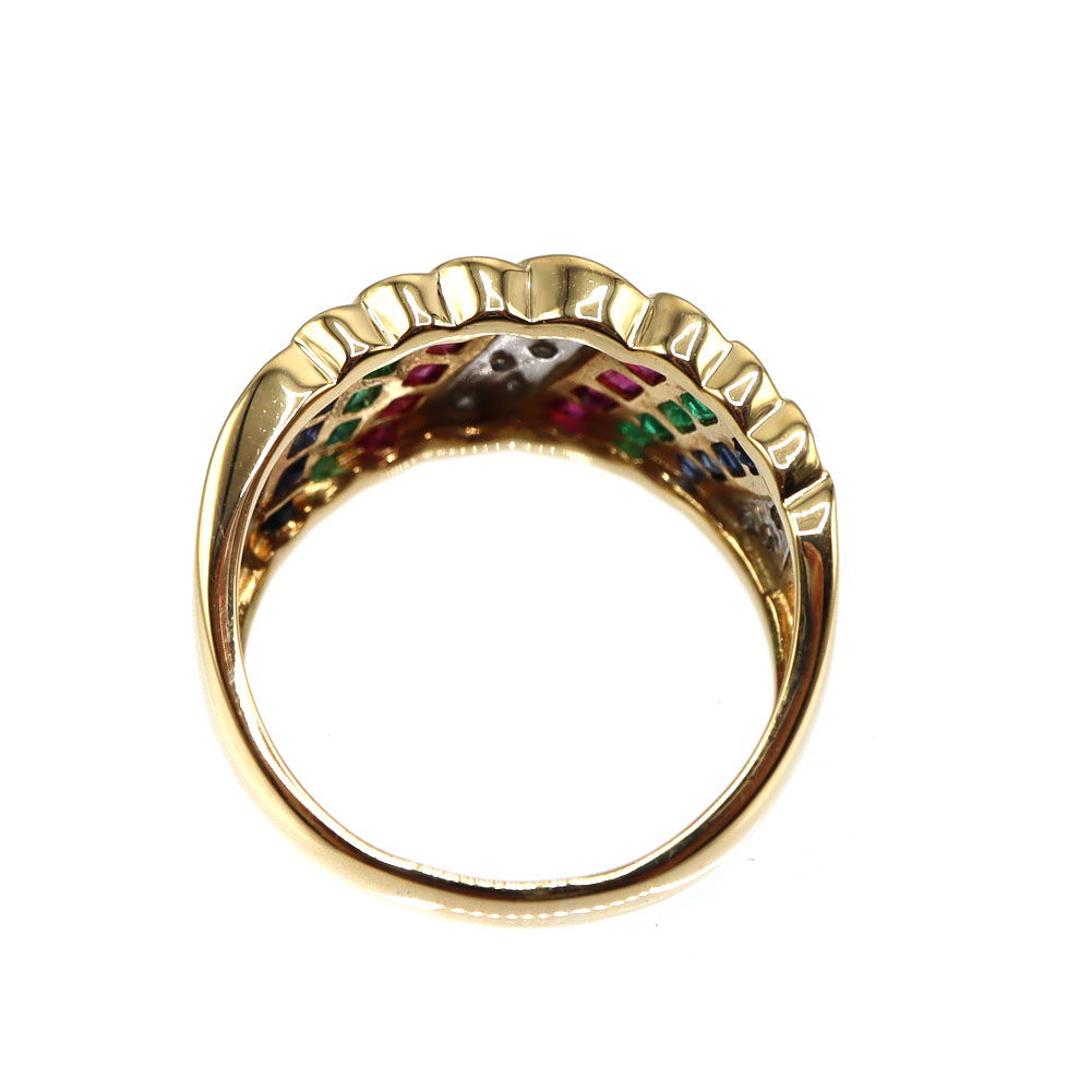 贅沢にあしらわれた ダイヤモンド・サファイア・ルビー・エメラルド が煌めく、華やかな K18ゴールドリング。