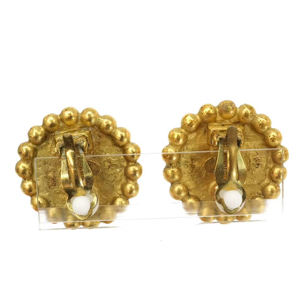 ゴールドカラーの繊細な装飾が美しいイヤリングです。 クラシカルな装いにもピッタリ。