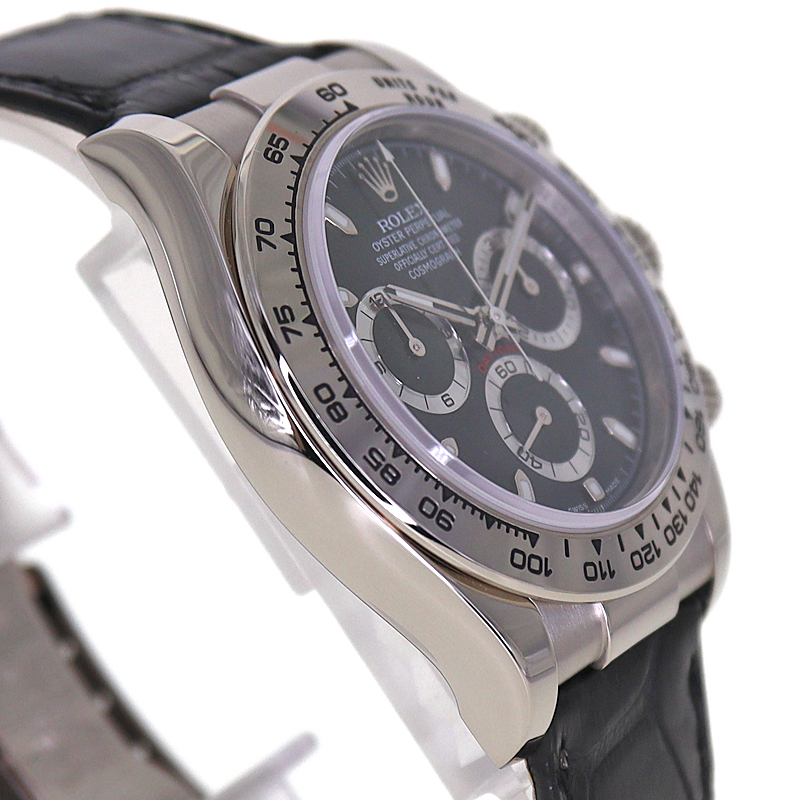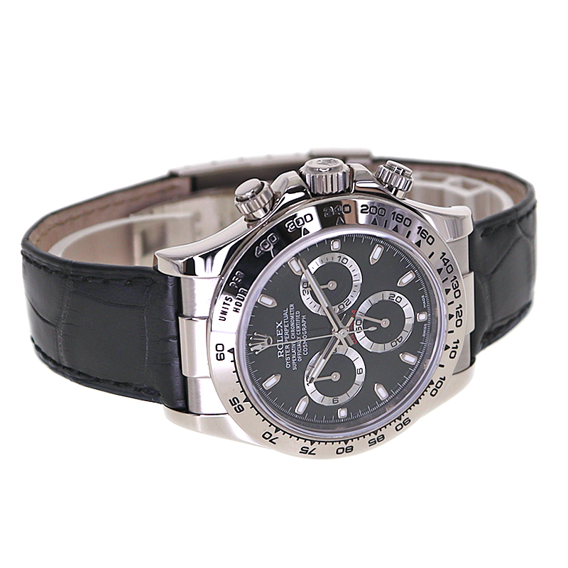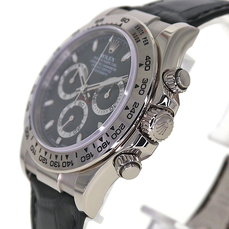 商品説明 | ■ロレックス・スポーツモデルの最上位機種であり最人気機種とされる“コスモグラフ デイトナ”。 1959年に誕生し、24時間耐久カーレースで有名な「デイトナ・インターナショナル・スピードウェイ」の名にちなんで命名されました。 ベゼルに直接タキメーターを刻むことで、レーシングイメージが強調されており、スポーティながらも高級感溢れるデザインは、数多くのファンを魅了しています。 心臓部にはクロノメーター検定をパスしたロレックス自社製自動巻きクロノグラフムーブメント・4130を搭載。 18Kホワイトゴールドケースにレザーストラップの組み合わせは上品な印象を演出してくれます。 ※尚、当サイトの販売金額より店頭での販売金額の方をお安く設定させて頂いております。(一部セール品などは除く)予め、ご了承下さいませ。 |