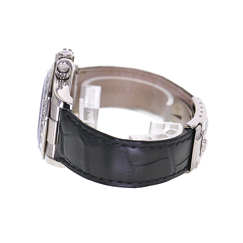 素材 | ケース:K18WG(ホワイトゴールド) ストラップ:レザー ダイヤル:ブラック ガラス:サファイアクリスタル |