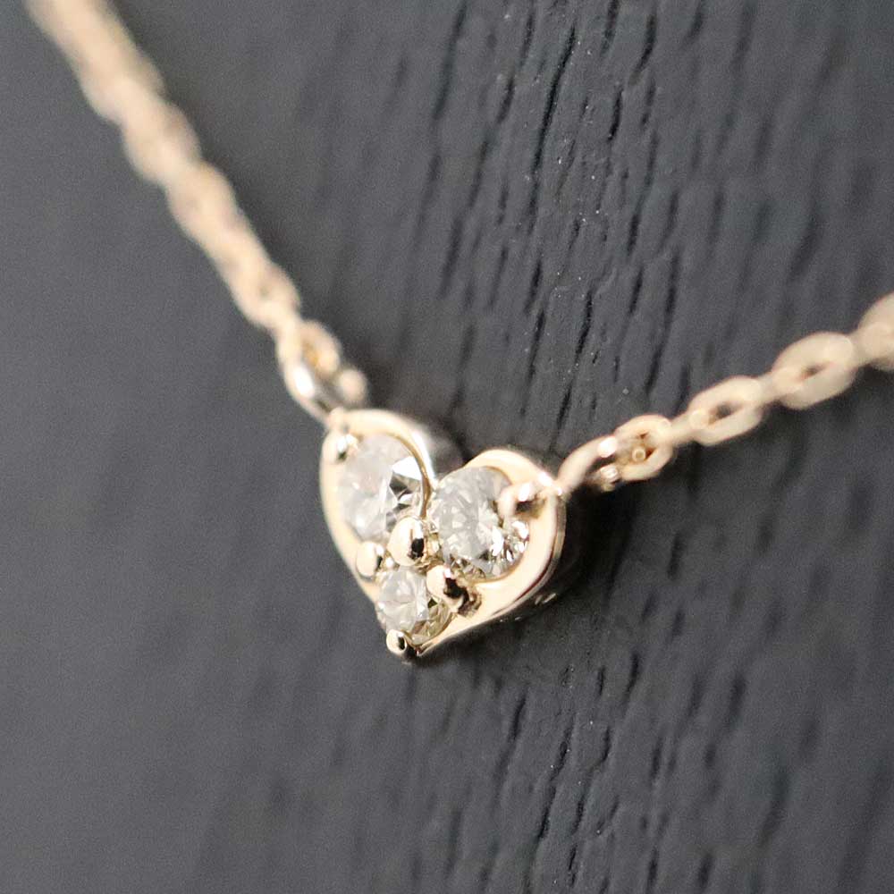 小ぶりなハートをモチーフとした可愛らしいネックレスが入荷しました。 モチーフには3粒のダイヤモンドがあしらわれており、キラキラと輝きます。 この機会にぜひいかがでしょうか。