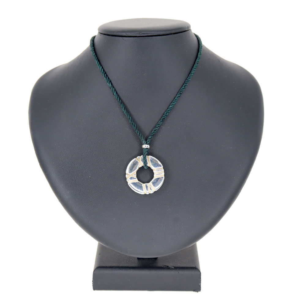 柔らかなブラックシルクコードと、大ぶりのアトラスペンダントトップがアクセントになったネックレスです。 チェーンの長さは調整可能で、頭からかぶる形で装着します。 服の上から見せてコーディネートのワンポイントにもなります。
