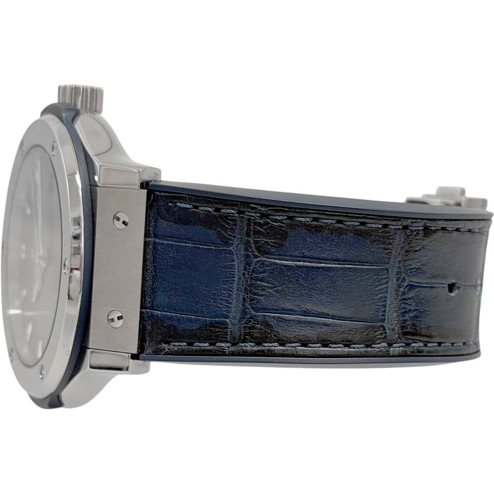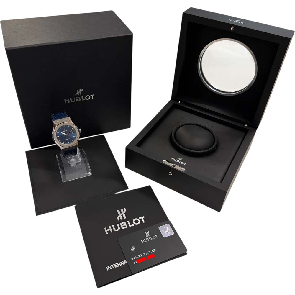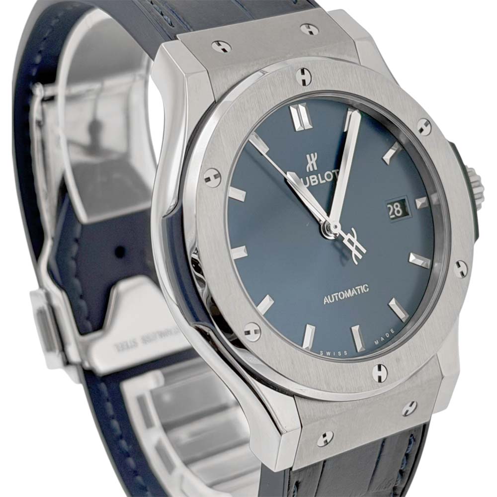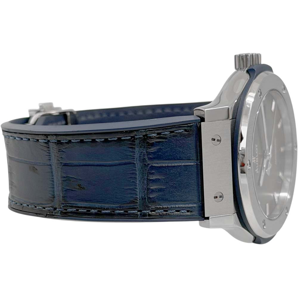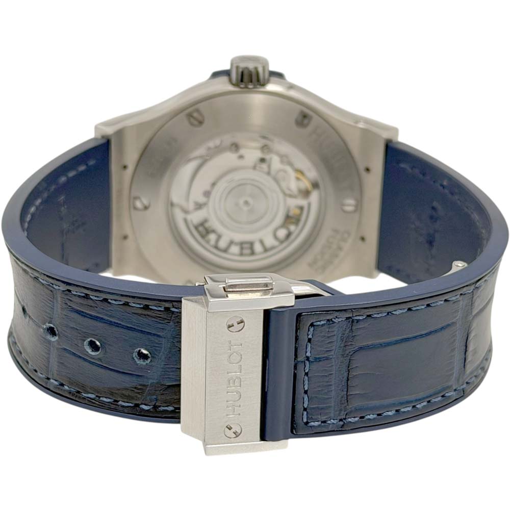 | 商品説明 | ウブロのクラシックフュージョン ブルーチタニウム(モデル番号: 542.NX.7170.LR)は、チタニウム製のケースを持ち、ブルーの文字盤が特徴的な腕時計です。このモデルはシンプルでエレガントなデザインで知られ、スイスの高級時計メーカー、ウブロの人気モデルの一つです。シンプルさとラグジュアリーを融合させたデザインは、さまざまなシーンでの着用に適しています。