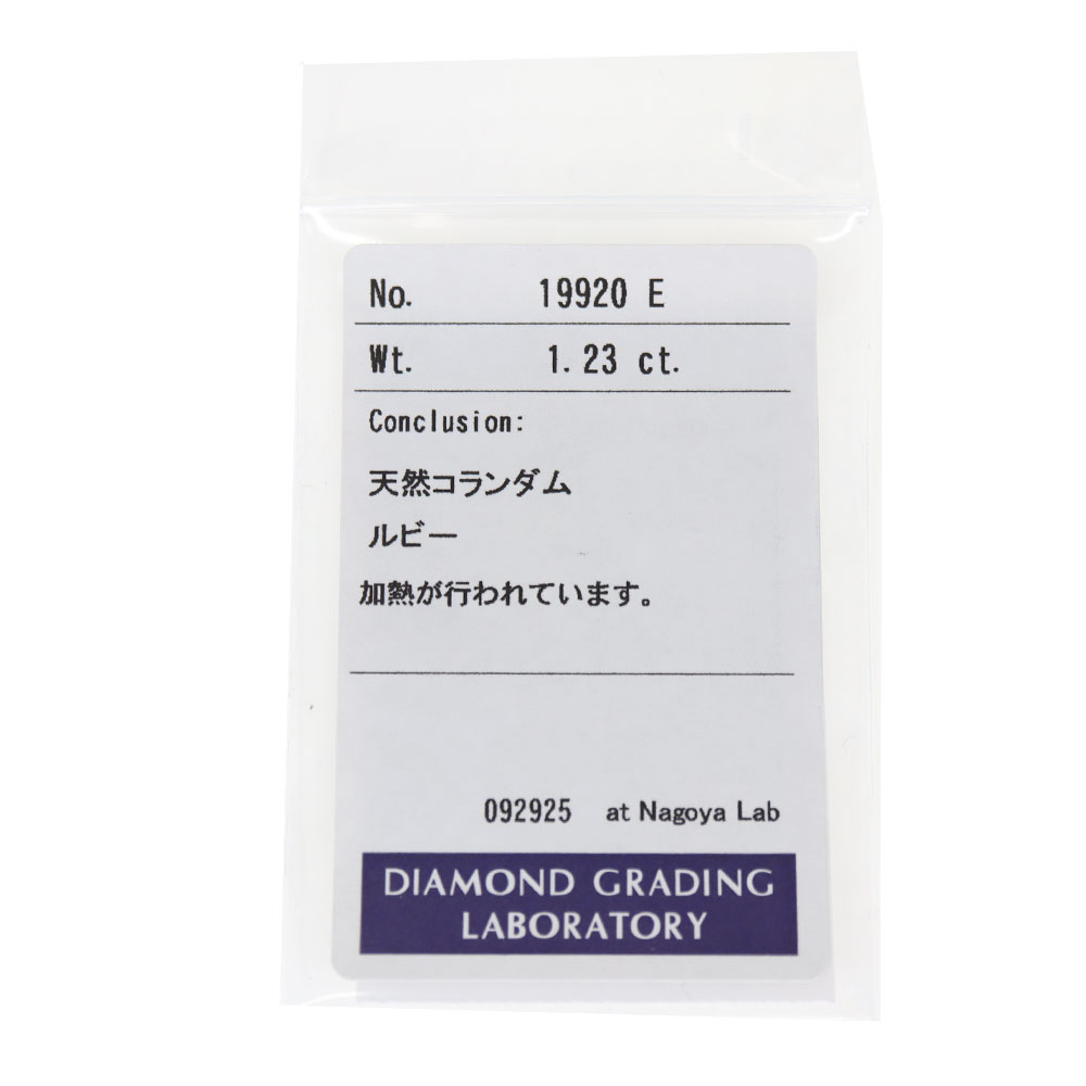 | 重さ | 総重量約:約5.8g ルビー:1.23ct ダイヤモンド:0.10ct |