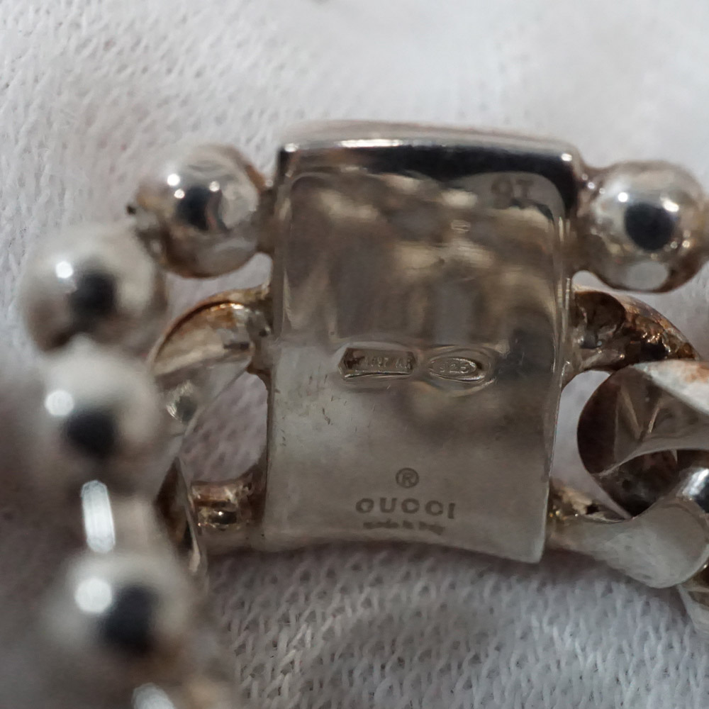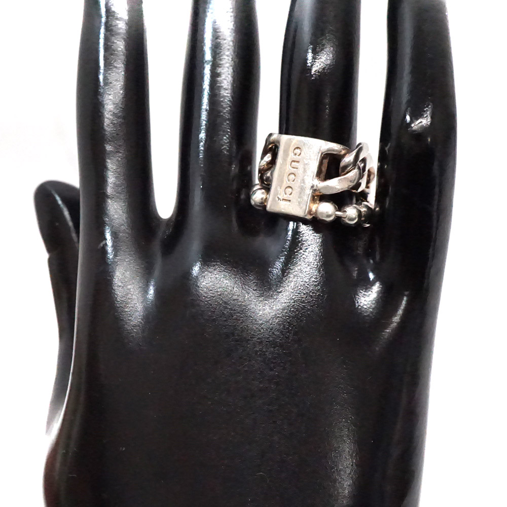 商品説明 | グッチのWチェーンロゴリングのご紹介です。 2種類のチェーンが組み合わり円を描いたデザインのオシャレなリングです。 チェーンモチーフのため多少の変形が可能で指の形にフィットしてくれるそんな1点となっております。 この機会にぜひいかがでしょうか。 ※尚、当サイトの販売金額より店頭での販売金額の方をお安く設定させて頂いております。予め、ご了承下さいませ。(一部セール品を除く) |