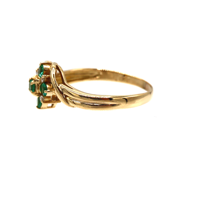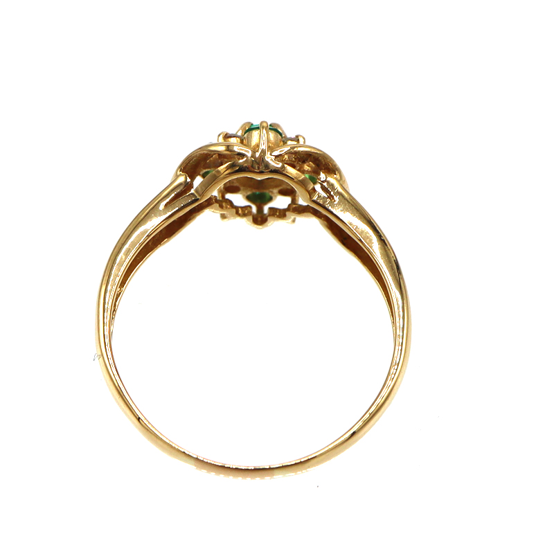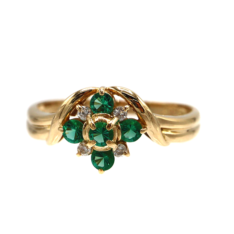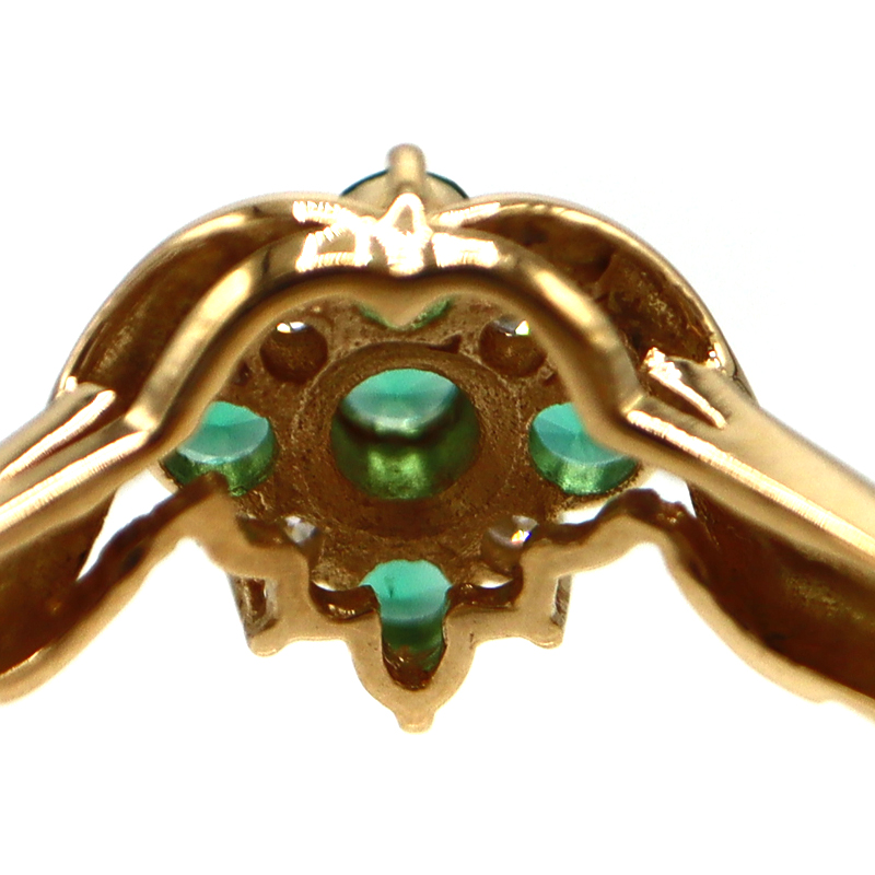 贅沢にあしらわれた ダイヤモンド・エメラルド が煌めく、華やかな K18ゴールドリング。