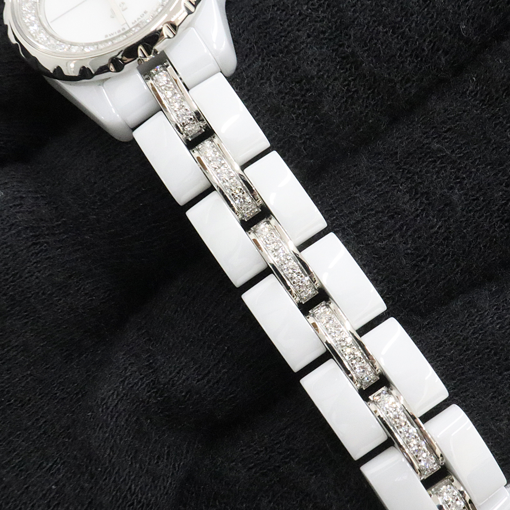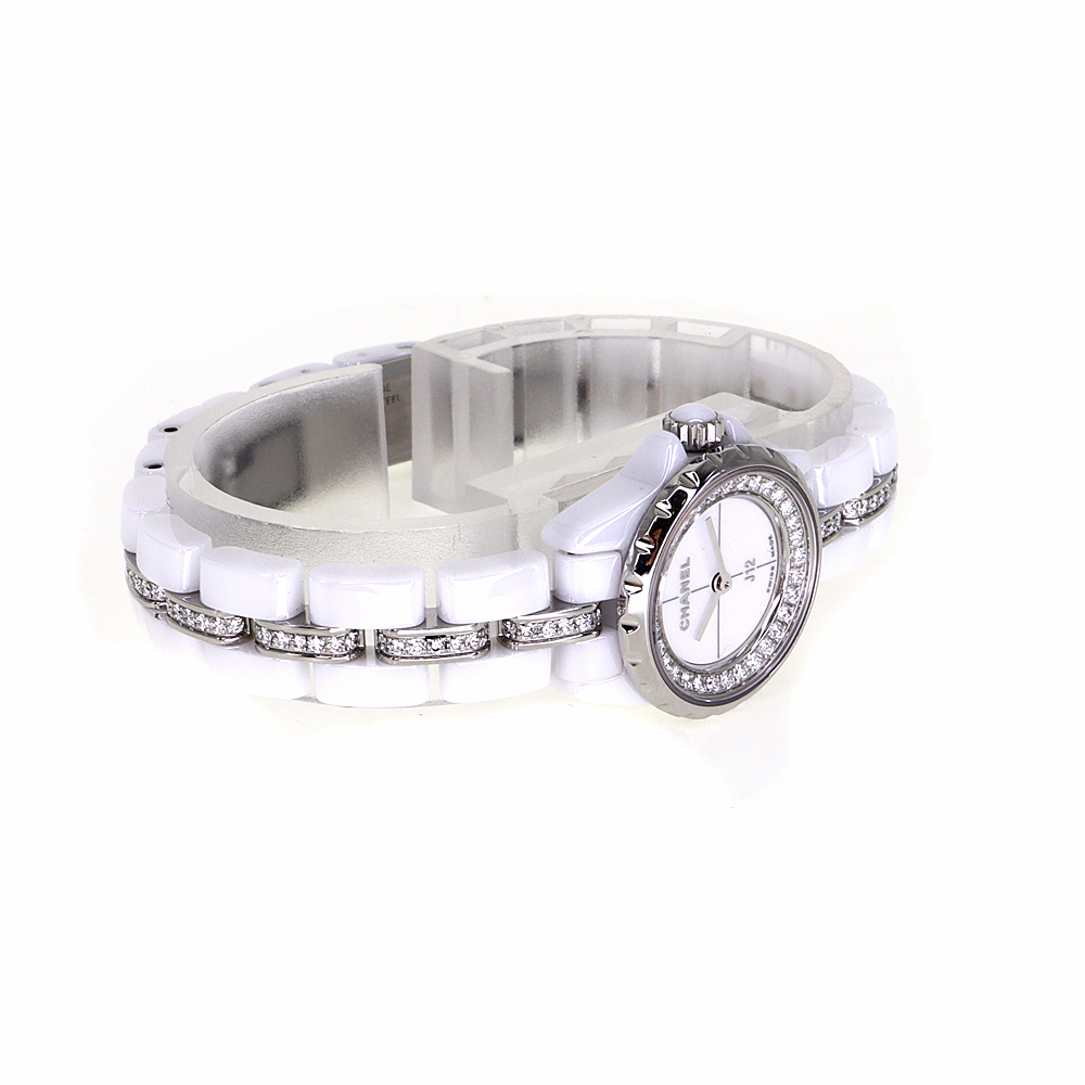 2000年に華々しいデビューを飾り時計界に革命を与えたと言われる“J12”コレクションです。 セラミック素材をケースとブレスレットに採用するという斬新な作りが魅力的で、瞬く間に多くのファンの心をとらえ世界中で爆発的ヒットを収めました。 中でもこちらのモデルは、ケースサイズが控えめな19mmとなり、これまでのJ12よりもラグジュアリー色の濃い仕上がりとなっています。 ダイアルのフリンジ部分には、32個のブリリアントカットダイヤモンドをセッティングしており、さらにブレスレットには、116個のブリリアントカットダイヤモンドがセッティングされています。 ぜひお探しの方はいかがでしょうか。