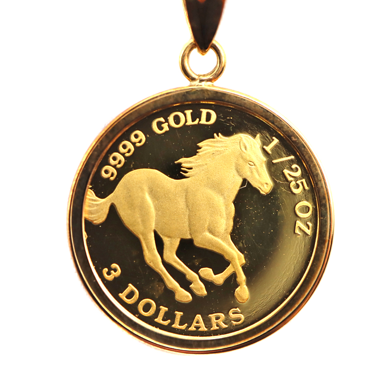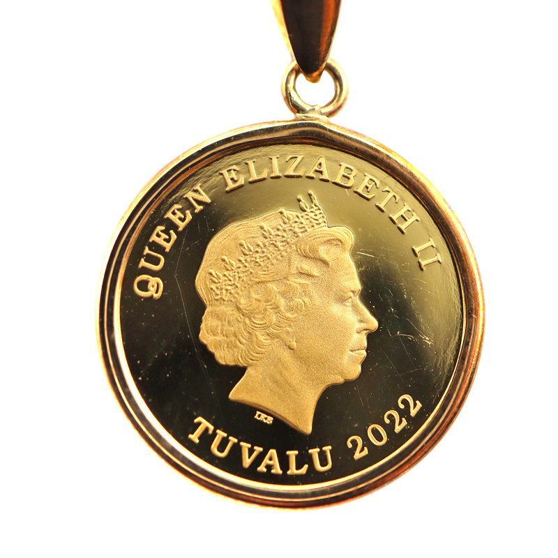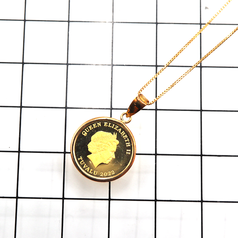 コインは24金で枠とネックレスチェーンが18金となっております。
