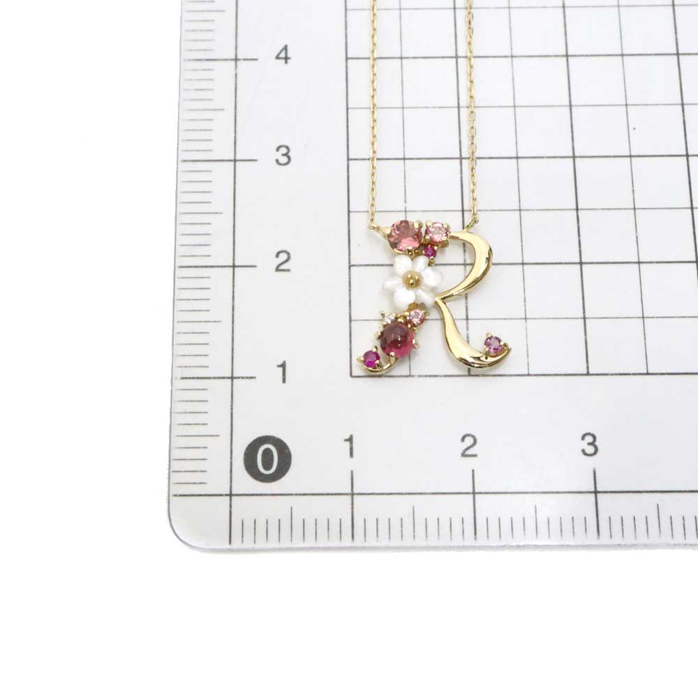 アルファベット「R」と花モチーフがデザインされた可愛らしいネックレスとなります。 首元を華やかにしてくれるアイテムです。 この機会に是非いかがでしょうか。