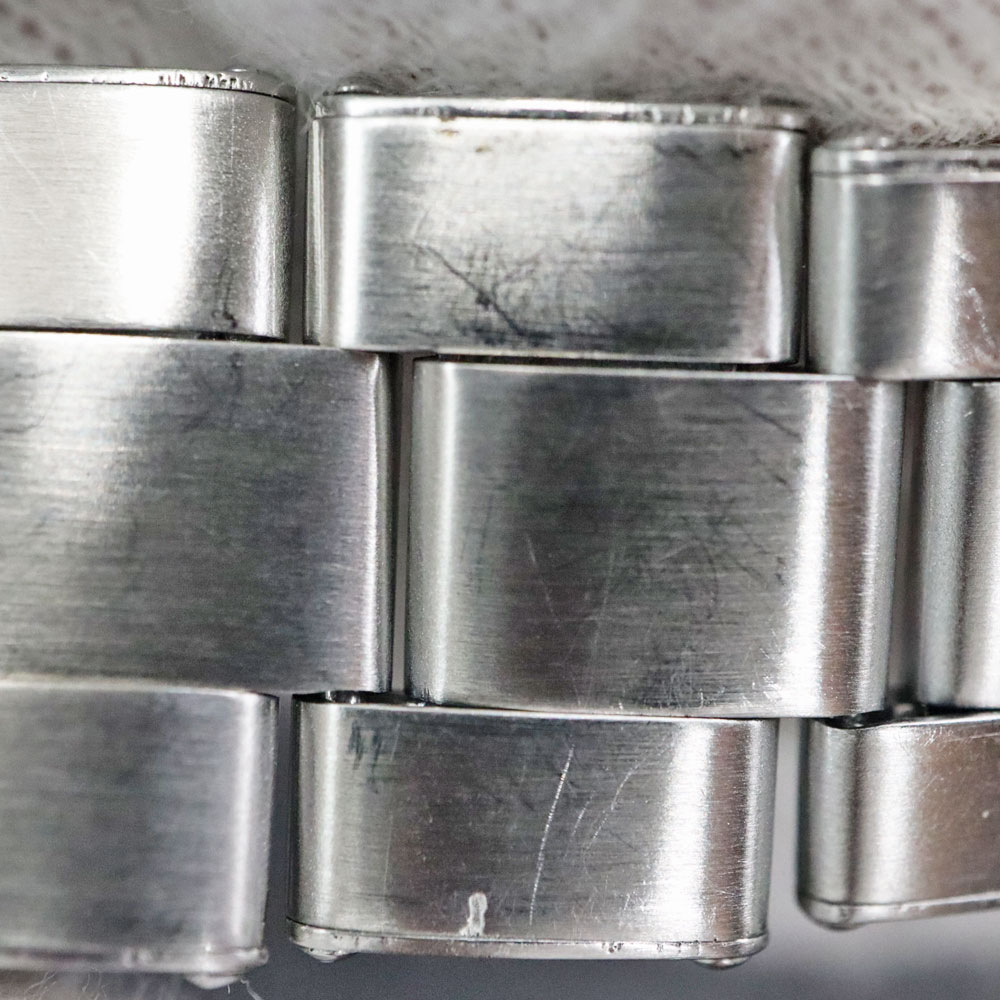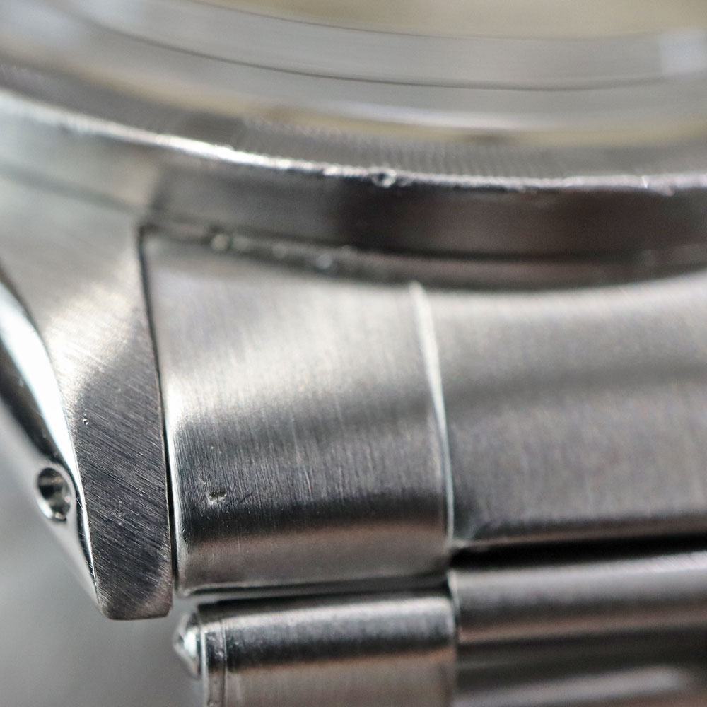 商品状態 | ■ブレス、ケースサイド、ベゼル、バックル部分にキズがございます。 ■ベルトの伸びがございます。 ■針に腐食がございます。 ■店頭でも販売中のため画像にない傷が付く場合が御座いますのでご了承下さいませ。 |