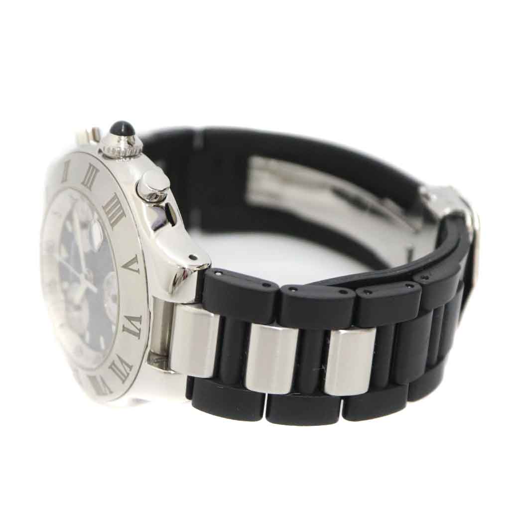 カルティエを象徴するローマ数字がベゼルに搭載されたモデルです。 ブラックの文字盤にカルティエのロゴ、2Cモチーフがプリントされています。 ラバーベルトにステンレスを組みわせ、軽量化を図ったモデルです。 この機会に是非いかがでしょうか。