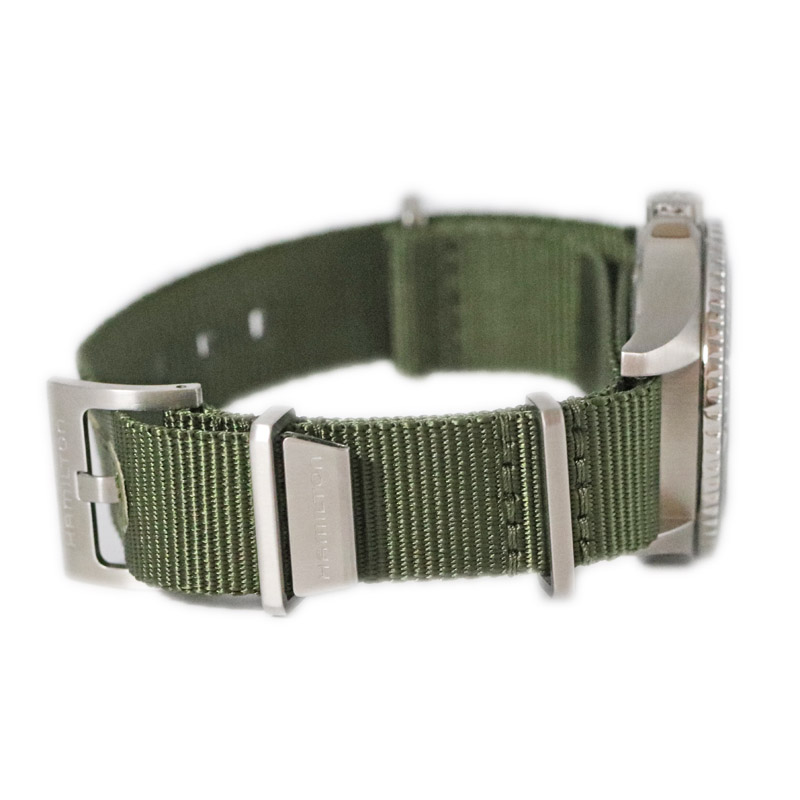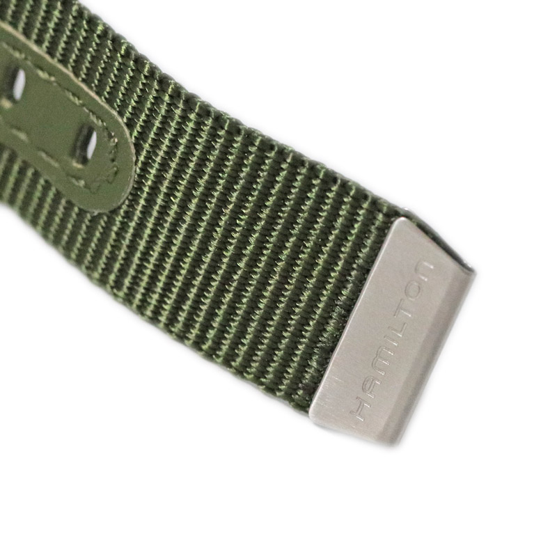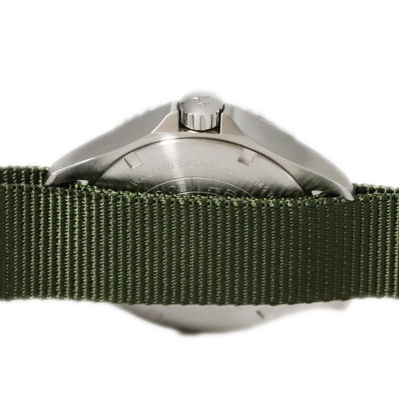 素材 | ケース:SS(ステンレススチール) ブレス:ファブリックブレスレット ダイヤル:カーキ系 ガラス:サファイアクリスタル |