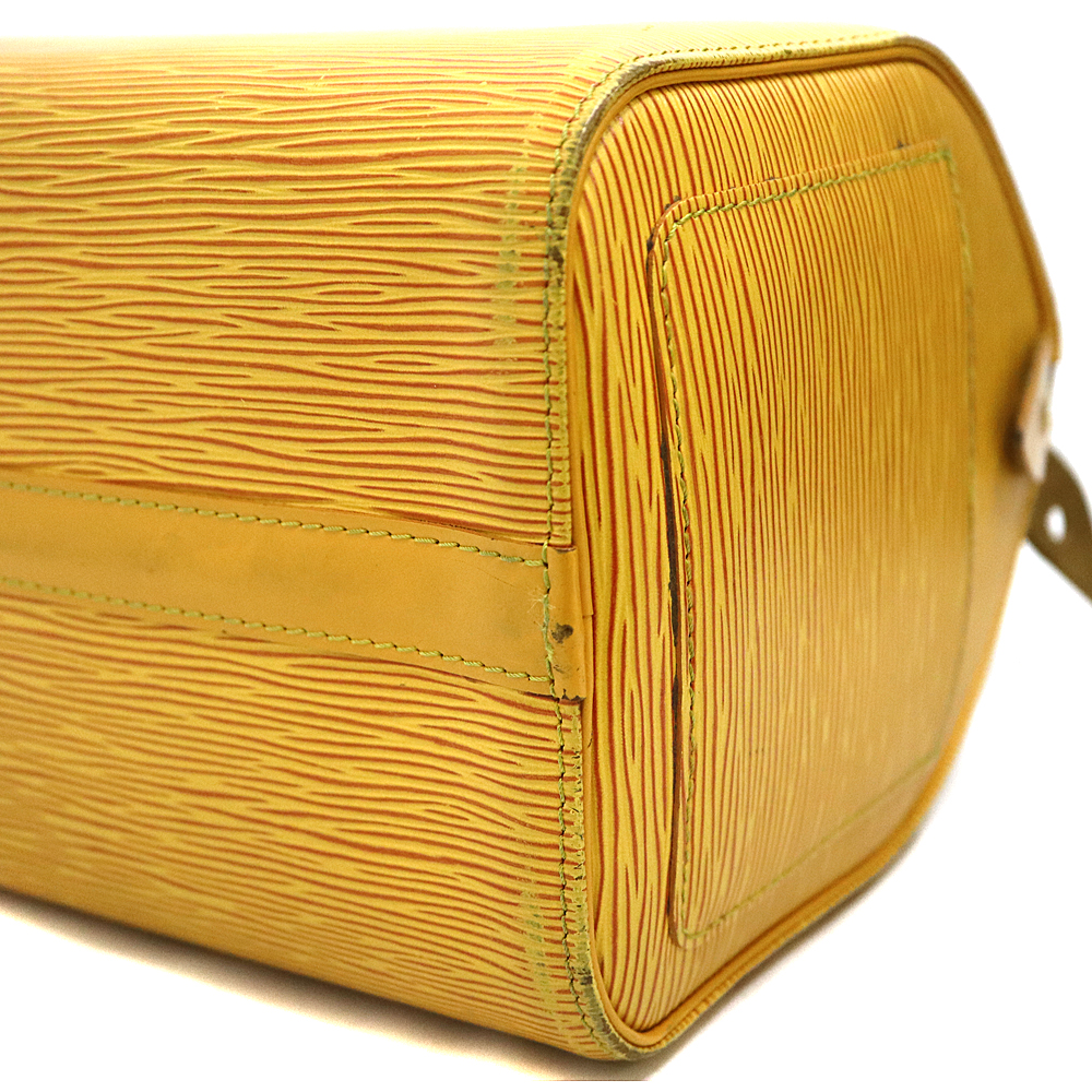 ヴィトンの定番ハンドバッグであるスピーディ。 こちらは丈夫なイエローのエピレザーを使用したお品物となっております。 コンパクトなサイズですがしっかりと収納力もある優秀なバッグです。 この機会に是非いかがでしょうか。