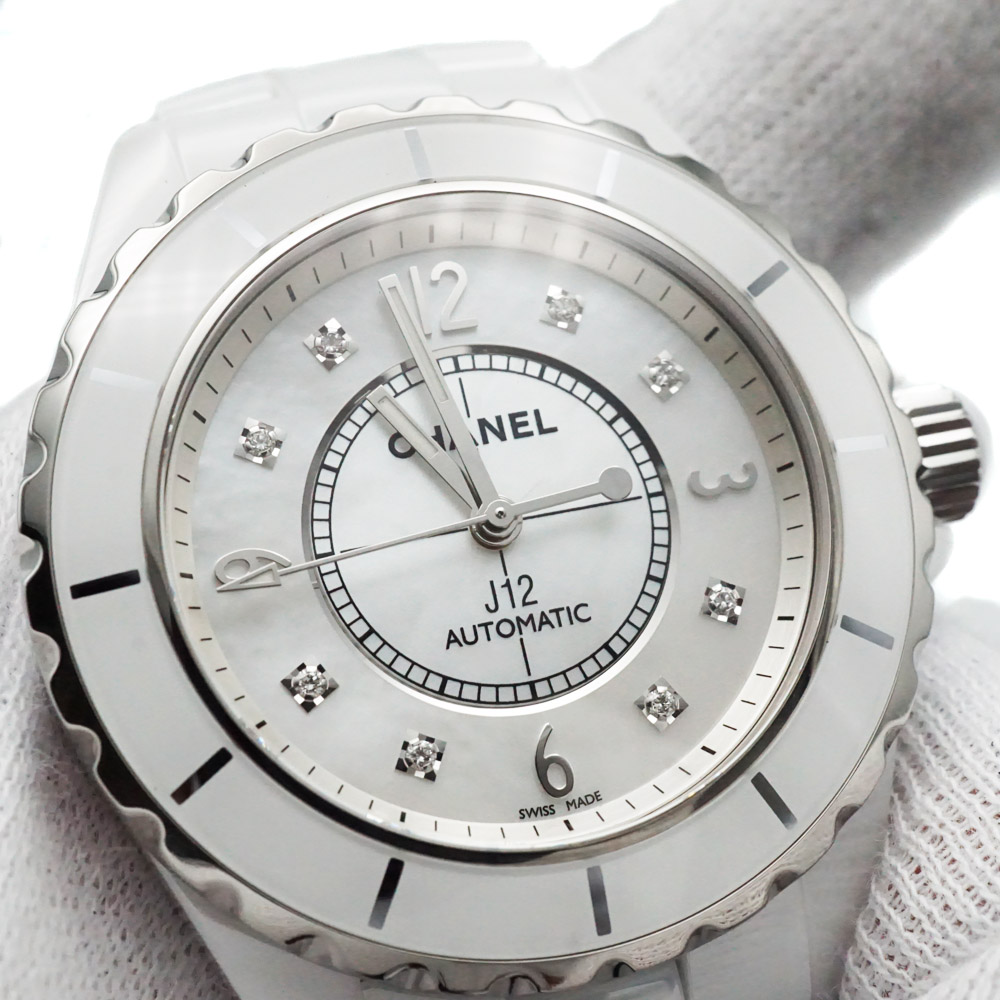 商品説明 | シャネルの大人気モデルJ12のホワイトシェル×8Pダイヤモンドダイヤルモデルです。 華やかで高級感のあるダイヤルと、ホワイトセラミックが豪華な印象のドレスウォッチです。 セラミックは耐食性に優れ、キズにも強いため、様々なシーンで活躍します。 この機会にいかがでしょうか? ※尚、当サイトの販売金額より店頭での販売金額の方をお安く設定させて頂いております。予め、ご了承下さいませ。(一部セール品等を除く) |