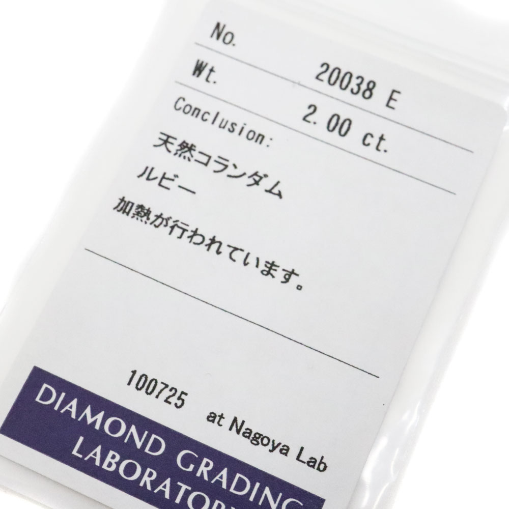 素材 | Pt900【プラチナ900】 ルビー:2.00ct ダイヤモンド:0.40ct |