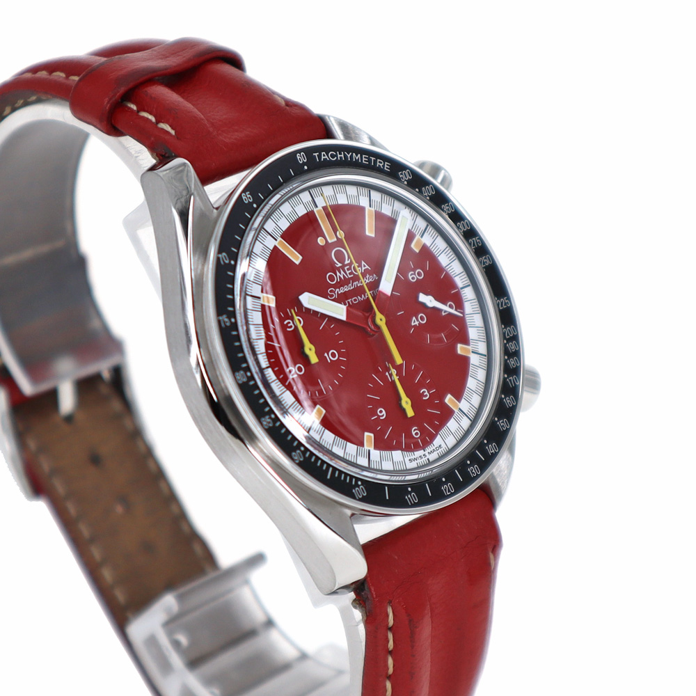 | 商品説明 | ■OMEGA【オメガ】の3510.61/スピードマスターレーシングシューマッハのご紹介です。 F1レーサーであるミハエルシューマッハとオメガが広告契約を結んだ記念として作られたモデルです。 文字盤の外側にはチェッカーフラグをデザインしており、赤色の文字盤と黄色いクロノグラフ針がとても目を引く一本です。 カラーリングがとてもオシャレですので、コーディネートのアクセントとしていかがでしょうか。 この機会に是非いかがでしょうか。 ※尚、当サイトの販売金額より店頭での販売金額の方をお安く設定させて頂いております。予め、ご了承下さいませ。(一部セール品等除く) |