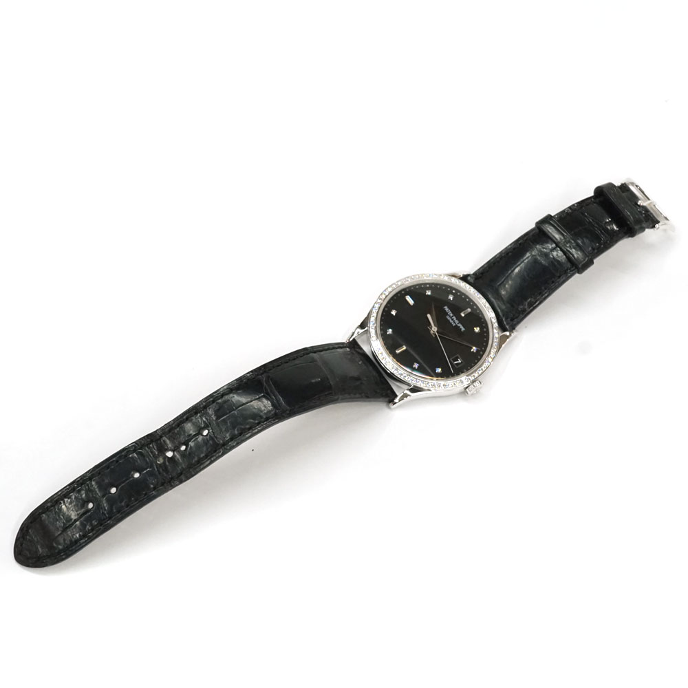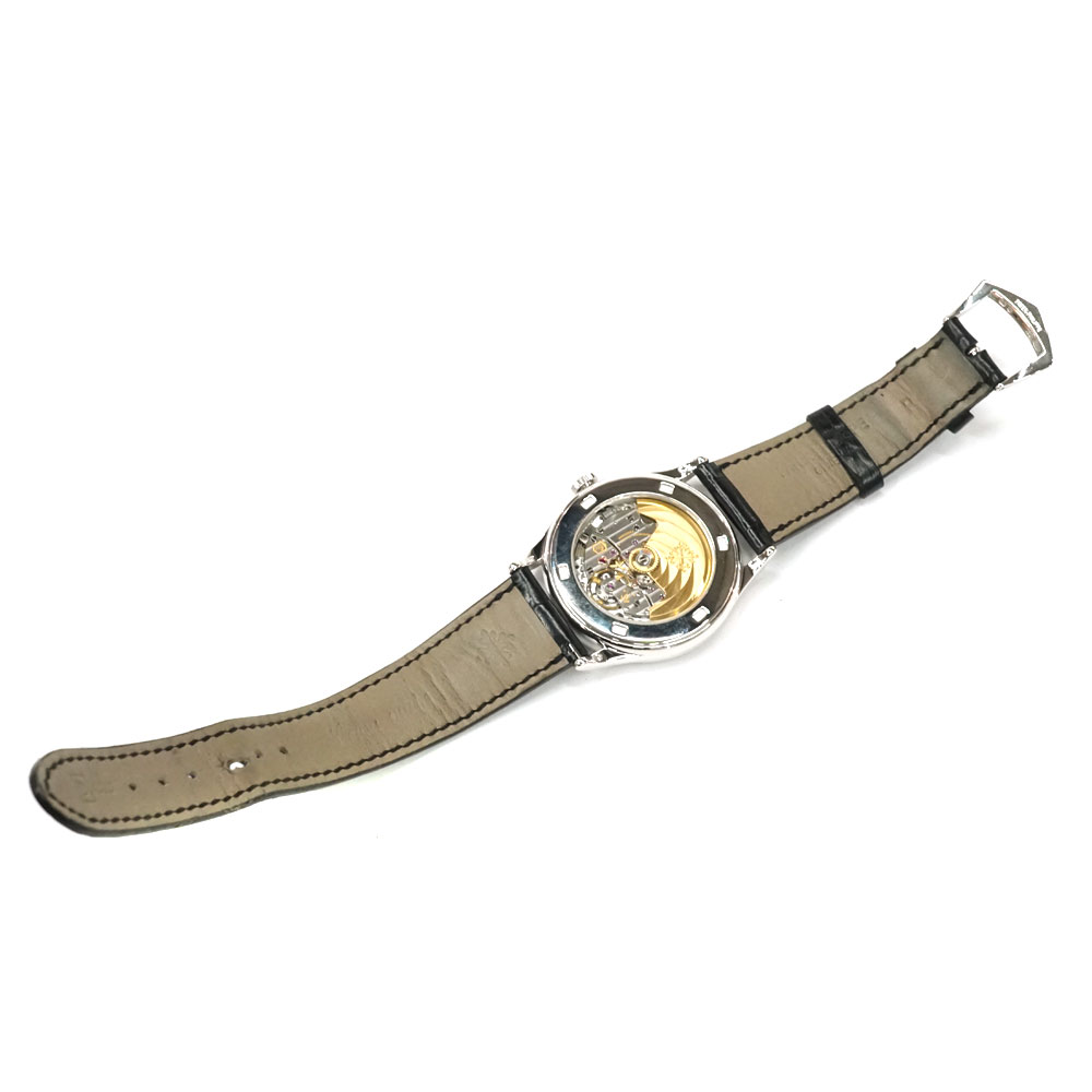 | 素材 | ケース:K18WG(18金ホワイトゴールド) ブレス:レザー ダイヤル:ブラック/ダイヤモンド約0.7カラット ガラス:サファイアクリスタル |