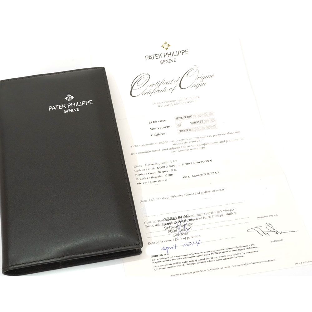 ベゼルとインデックスに施された約0.7カラットのダイヤモンドセッティングは、 数ある「カラトラバ」の現行コレクションにおける、Ref.5297に与えられた唯一無二の個性にほかなりません。