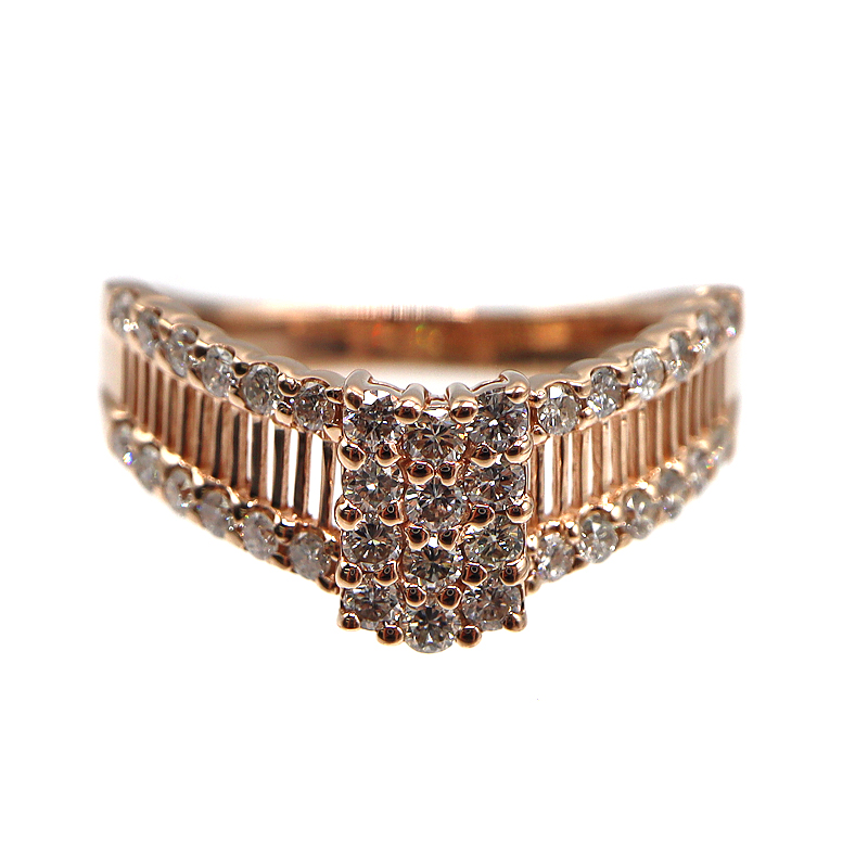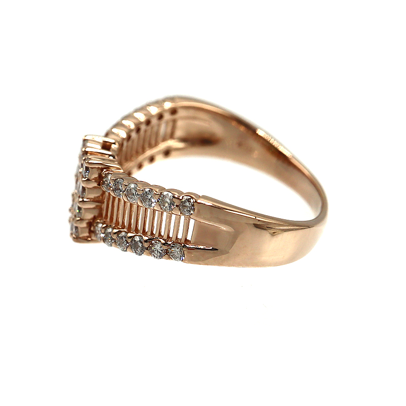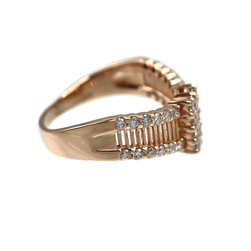 温かみのあるピンクゴールドに、合計0.70ctのダイヤモンドを贅沢にあしらったリングです。