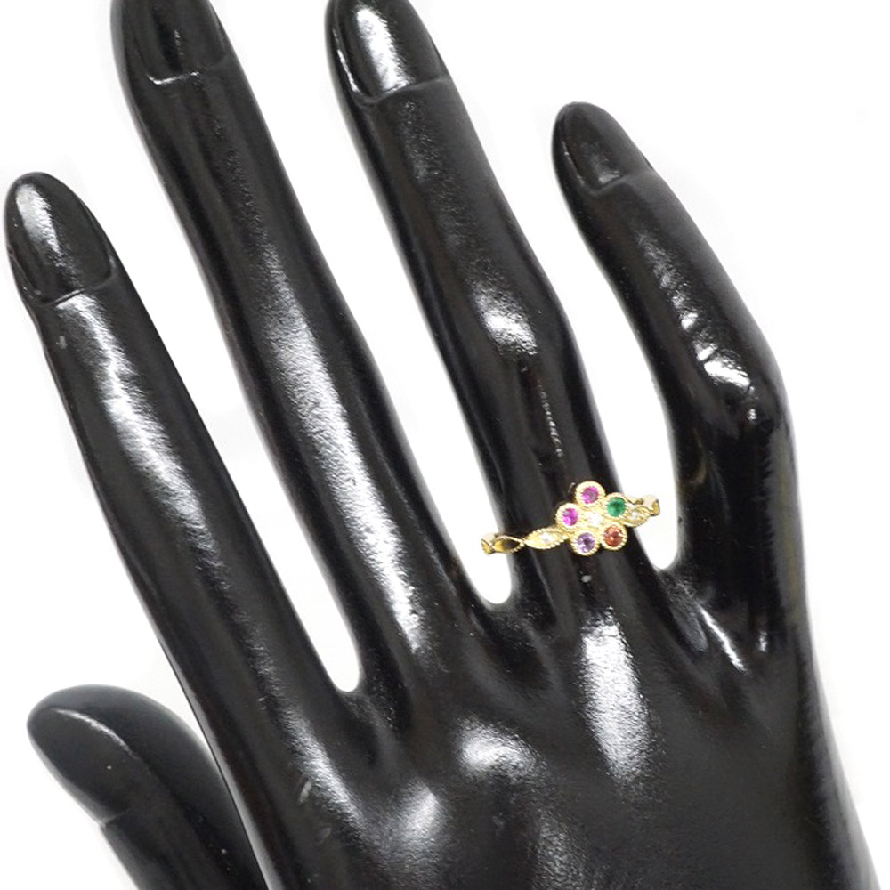 商品説明 | K18 マルチカラーストーンリングのご紹介です。 色石が5つ花のように並べられた可愛らしいリングです。 控えめなデザインながらも存在感を放ちます。 ※尚、当サイトの販売金額より店頭での販売金額の方をお安く設定させて頂いております。予め、ご了承下さいませ。(一部セール品等を除く) |