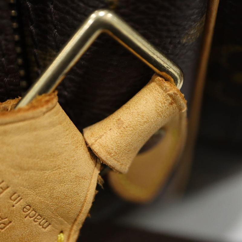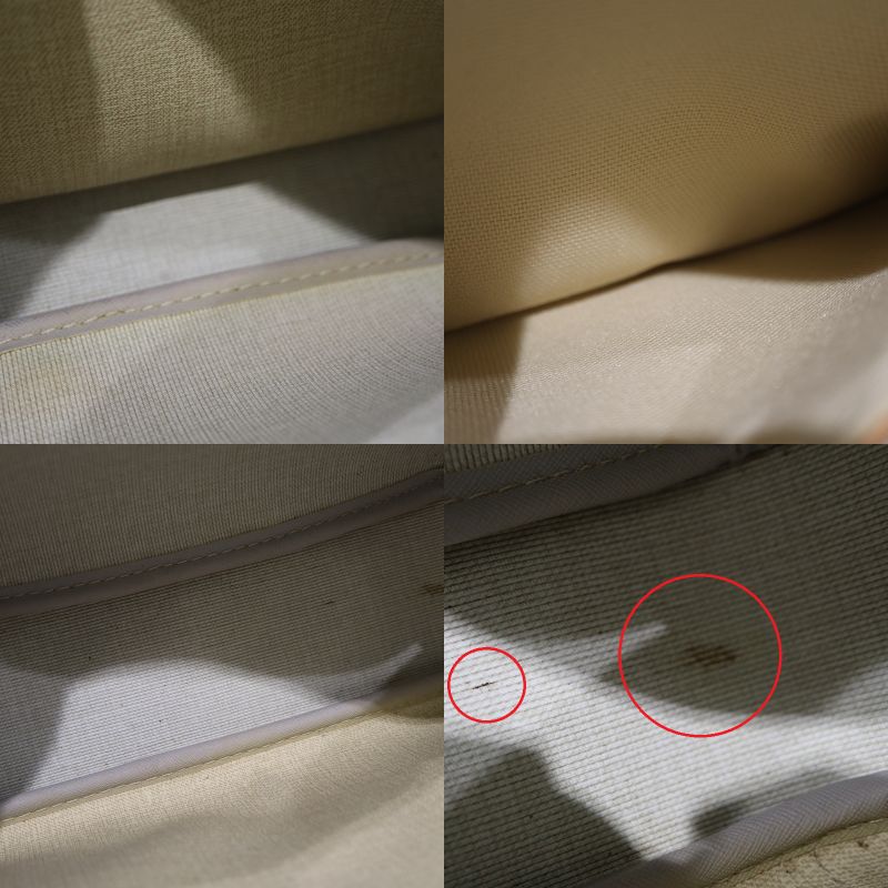 ■型崩れ ■金具の小傷、くすみ ■外側汚れ ■内側汚れ ■ヌメ革シミ、傷、汚れ ■ショルダー付け根使用感あり ■ショルダー バックル部分劣化、退色 ■素材特有のニオイが強く残っています。 ■全体的に小さな傷やすれが見受けられますがまだまだお使いいただける商品です。 |