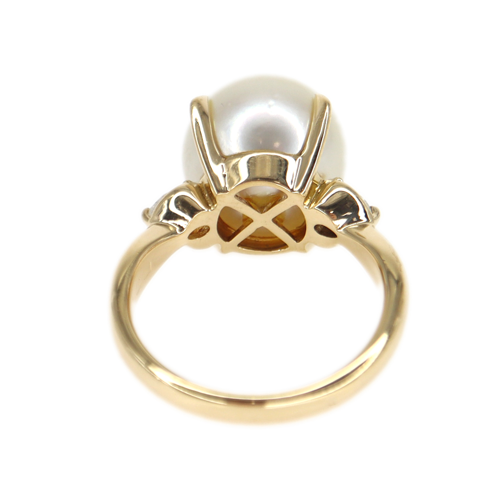 大きなパールが中央にセッティングされたゴージャスなリングです。 サイドにはダイヤモンドも施されているので、より華やかな印象を与えてくれます。 つやのあるパールが目を惹くアイテムとなっており上品かつ高級感あふれたお品となっております。