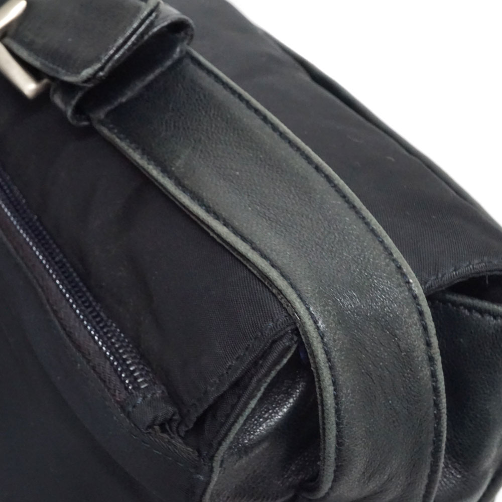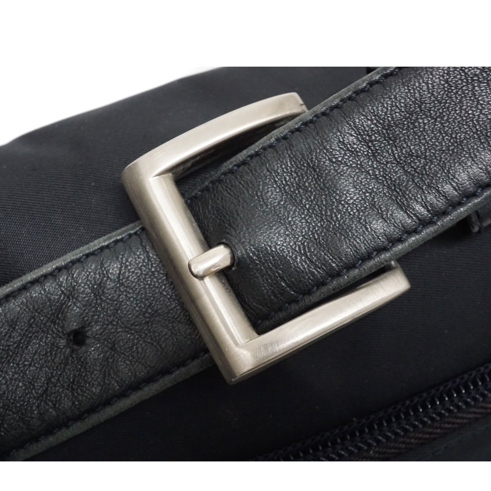 ブラックのナイロン生地に三角のブランドロゴが配置されたシンプルで使いやすいデザインです。