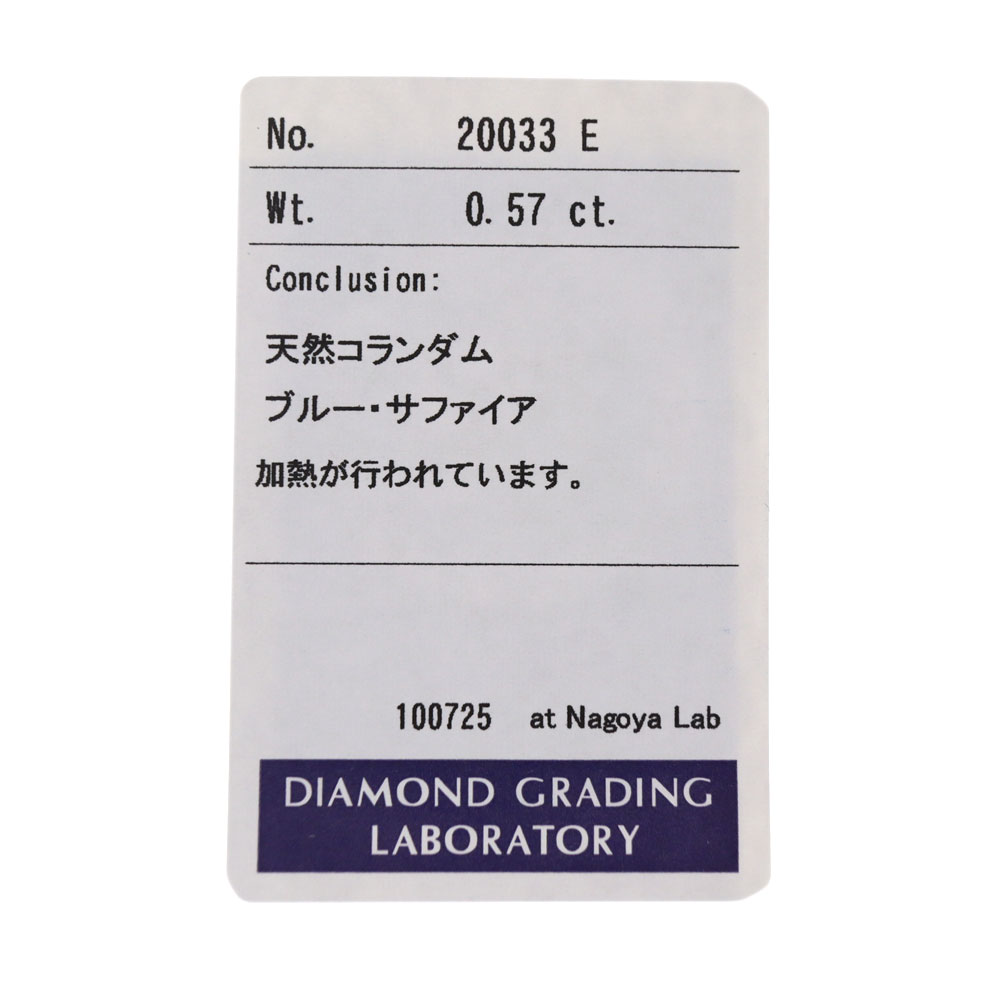 | 素材 | チェーン:Pt850【プラチナ850】 トップ:Pt900【プラチナ900】 サファイア:0.57ct ダイヤモンド:0.10ct |
