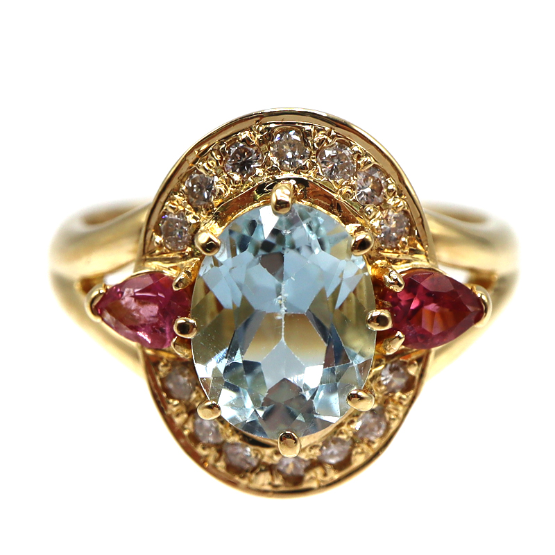 | 商品名 | ブルートパーズ2.10ct ダイヤモンド0.28ct ピンクトルマリン0.26ctリング |