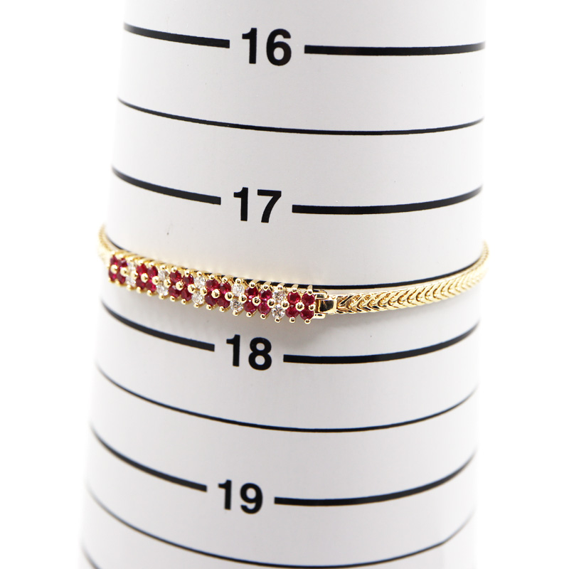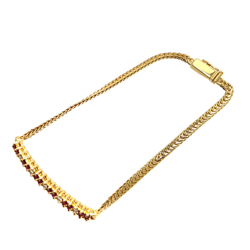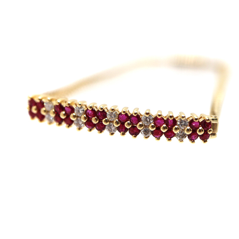 艶やかなルビーと上質なダイヤモンドが美しく輝く、K18イエローゴールドのブレスレットです。