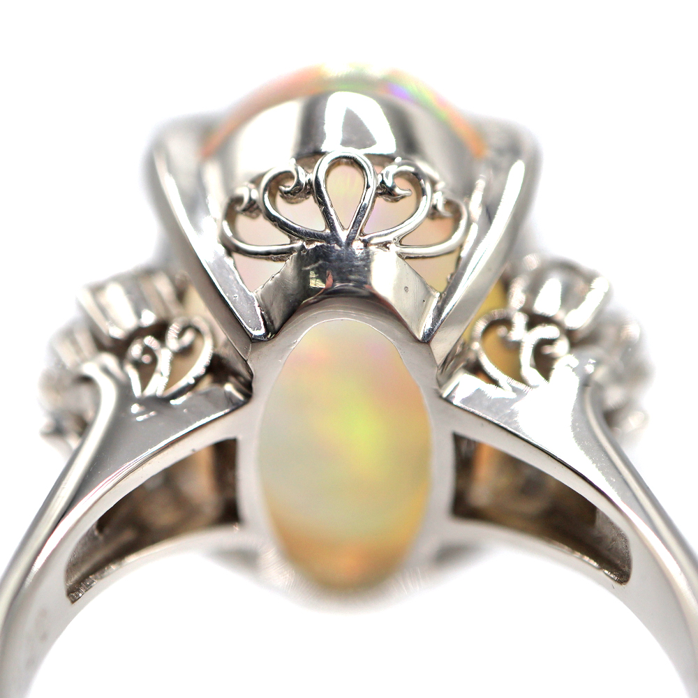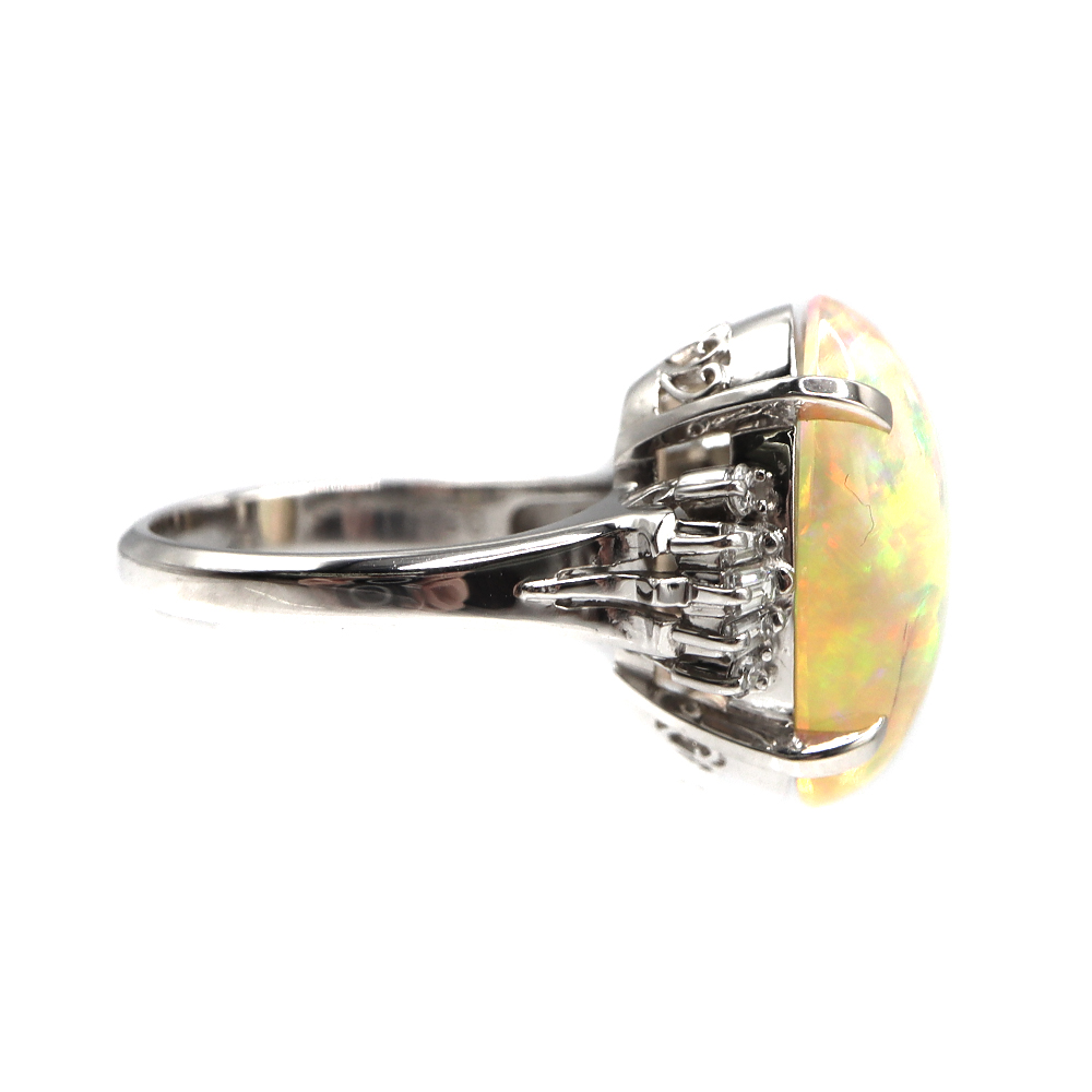 神秘的な遊色効果が魅力のオパールをあしらったリングです。