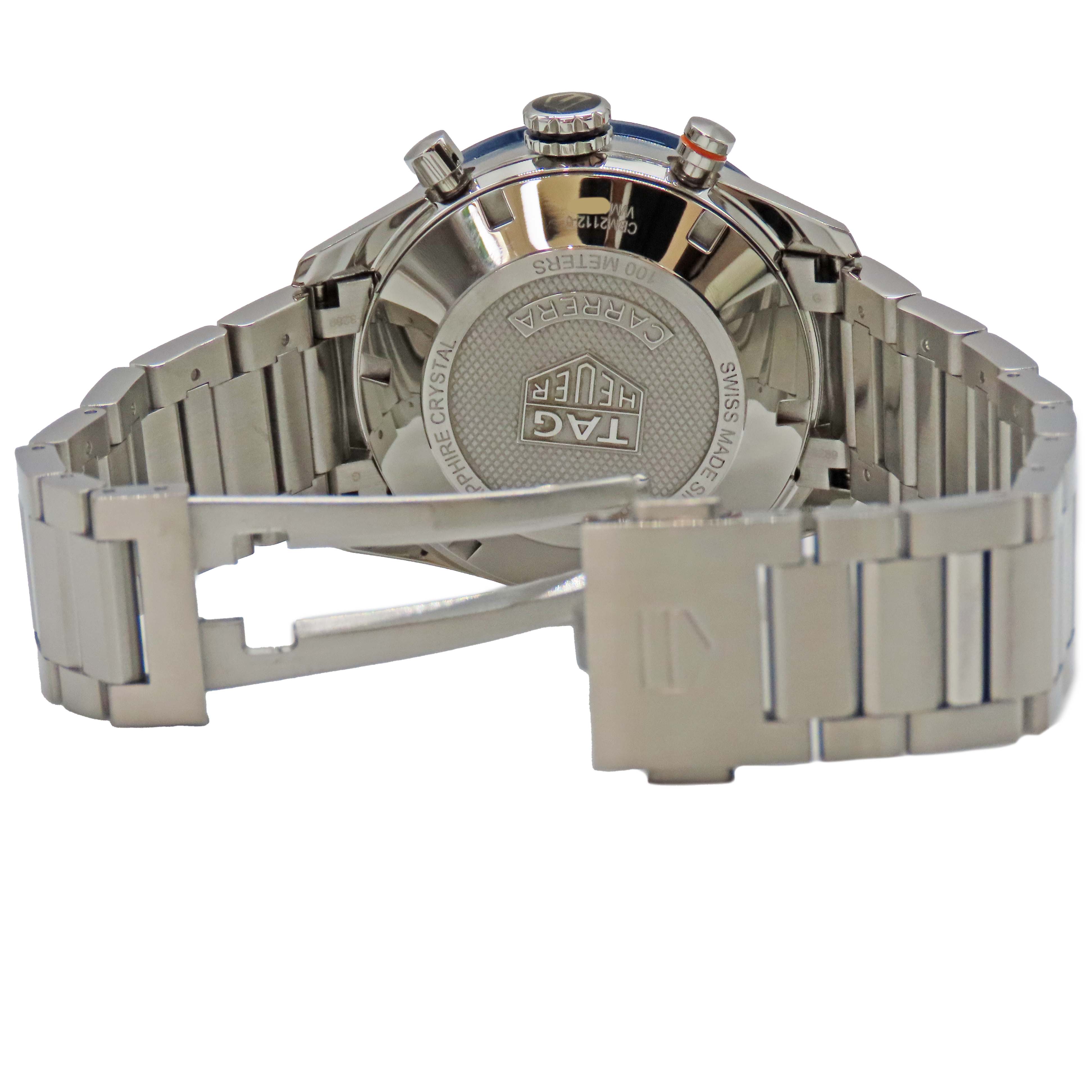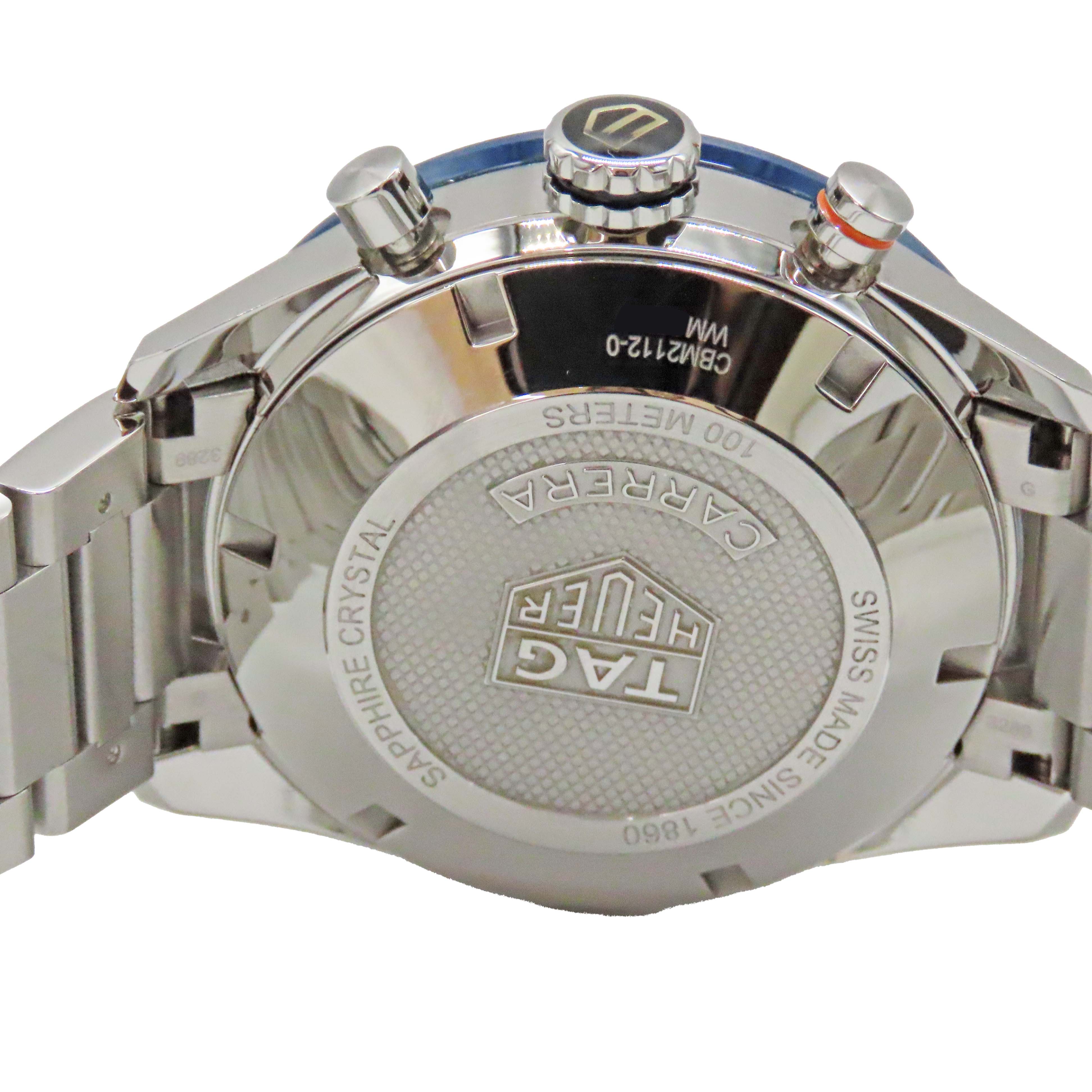 | 商品説明 | タグホイヤー カレラ CBM2112.BA0651は、信頼性の高いCalibre 16自動巻きムーブメントを搭載した本格クロノグラフ。約42時間のパワーリザーブと100m防水で日常使いにも安心。ブルーセラミックベゼルとサンレイ仕上げの文字盤が高級感を演出し、視認性に優れたスーパールミノバ加工の針とインデックスも魅力。スポーティさと洗練を兼ね備えた万能モデルです。
