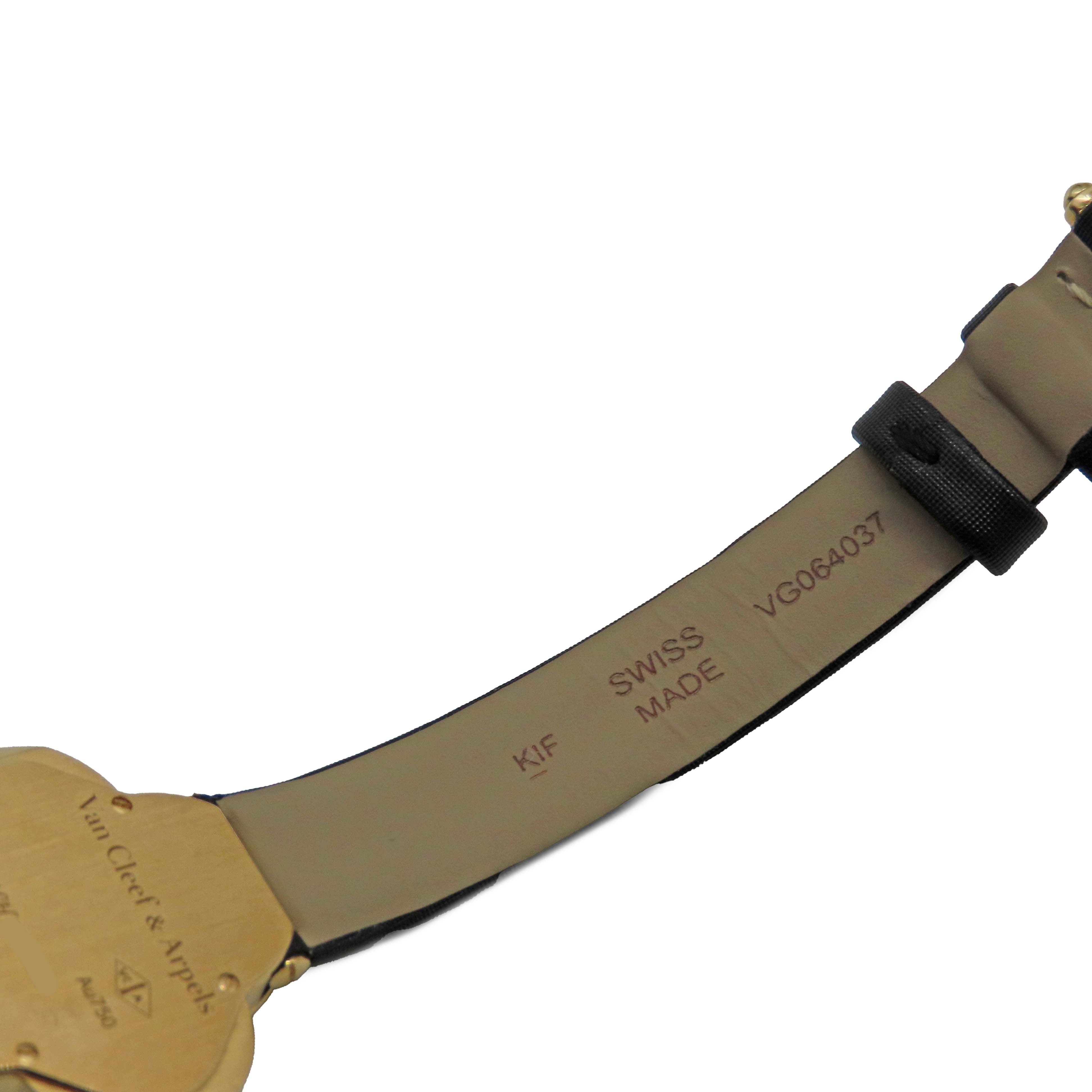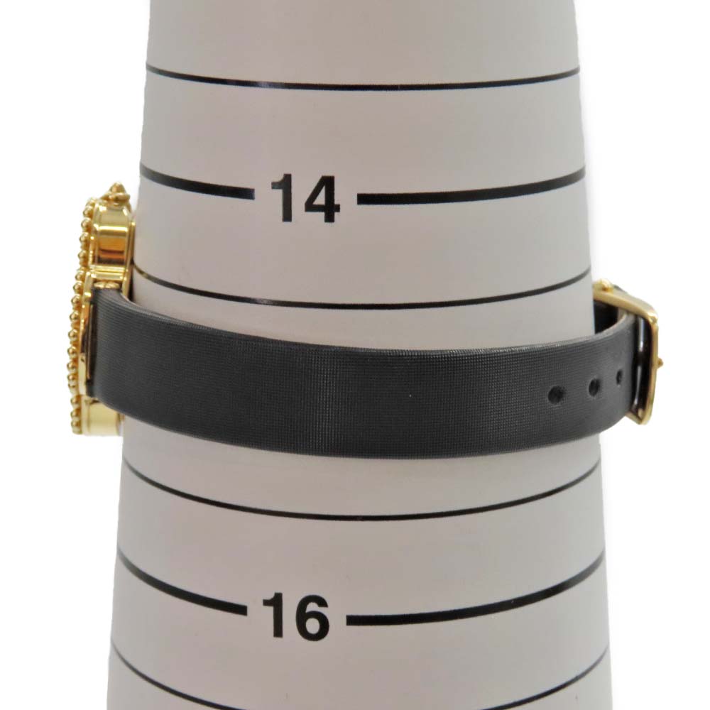 | 素材 | ケース:K18YG(イエローゴールド)750刻印 ブレス:レザー×YG(イエローゴールド) ダイヤル:ブラック(オニキス) ガラス:サファイアクリスタル |