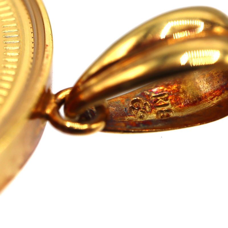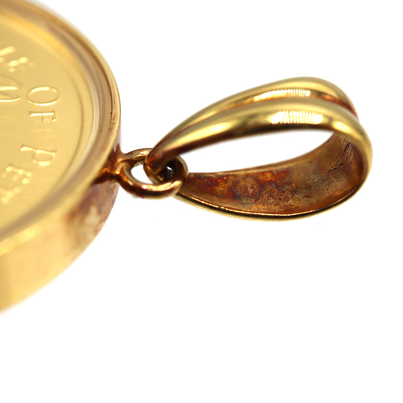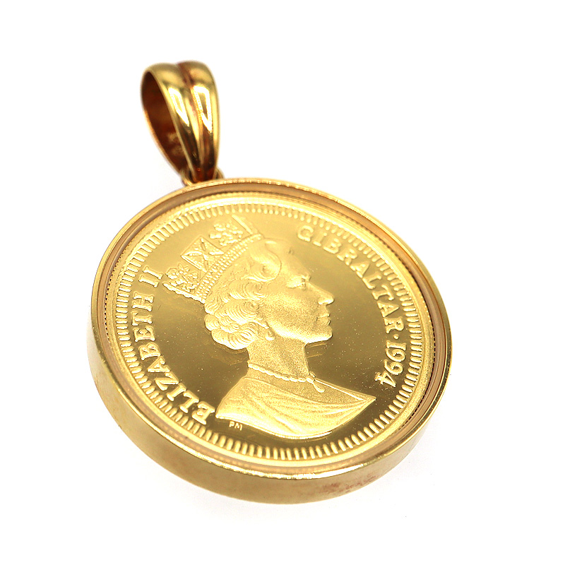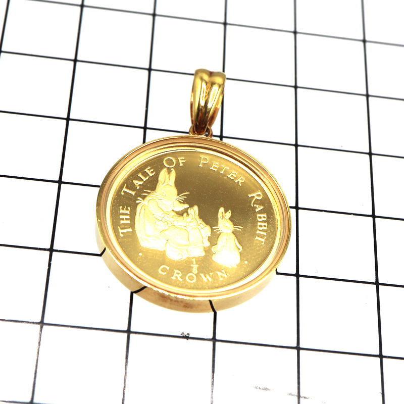 人気のピーターラビットデザインのコインを使用した、K18枠付きペンダントトップです。