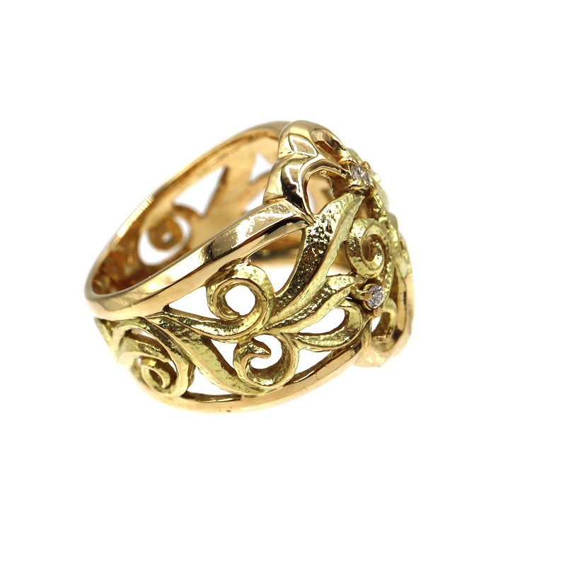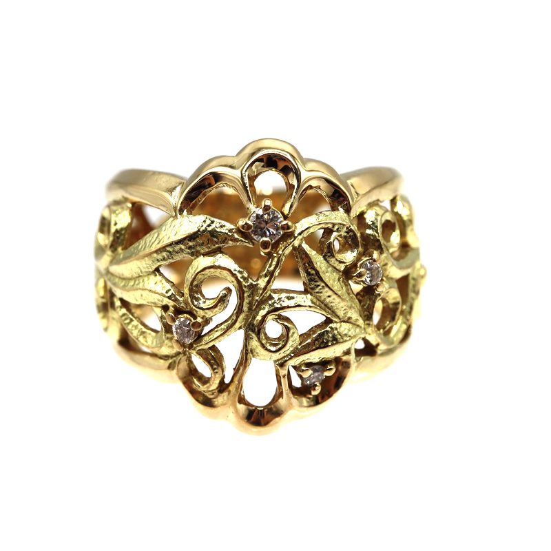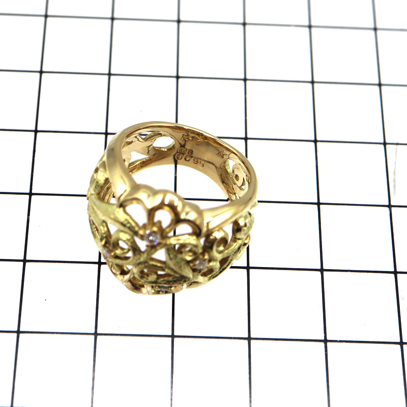上質なK18素材に、0.095カラットのダイヤモンドをあしらったリングです。
