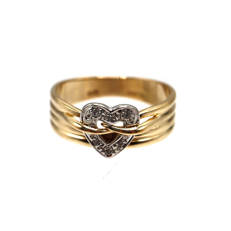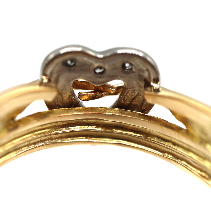 K18×Pt900のコンビ素材が美しい高級感を放つダイヤモンドリングです。