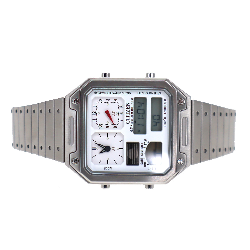 1982年、温度センサー搭載のコンビネーションウオッチとして登場し、個性豊かなデザインで多くのファンに愛された「サーモセンサー」を現代版としてアップデート。 別体ベゼルやバンドの飾り穴が、コンビネーションクオーツのレトロな表情を強調。武骨でありながらも洗練されたデザイン。 ビジネスからカジュアルシーンまで、様々なシーンに調和するデザインです。 お探しの方はこの機会に是非いかがでしょうか。