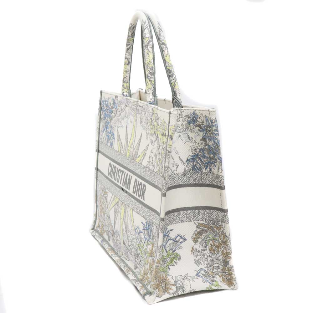 ディオールの定番人気であるブックトートとなります。 こちらは大容量のラージサイズとなり、荷物が多い方、旅行用などにもおすすめです。 ホワイト地に細かな刺繍が美しいアイテムとなります。 この機会に是非いかがでしょうか。