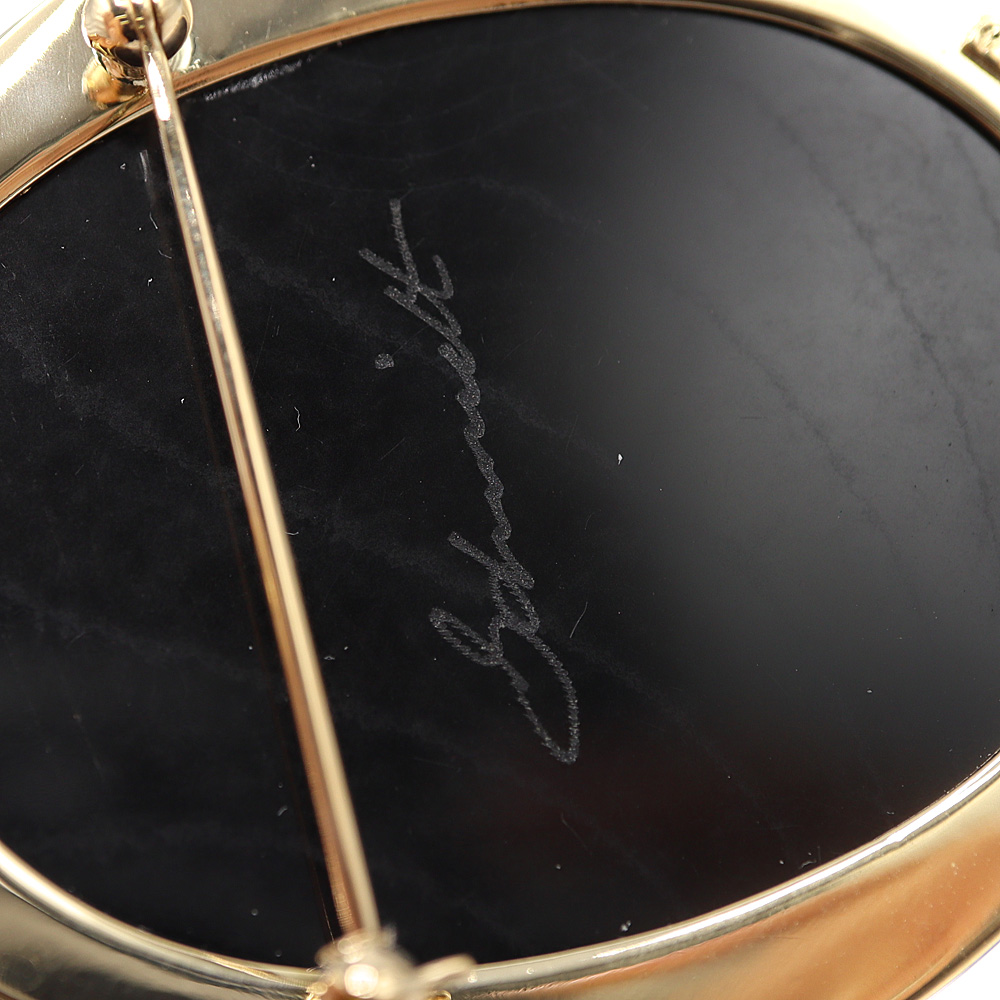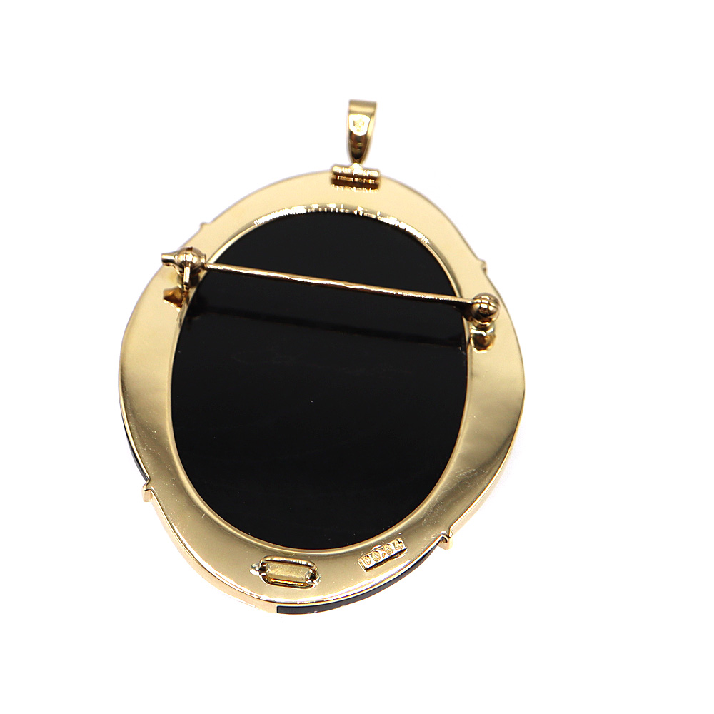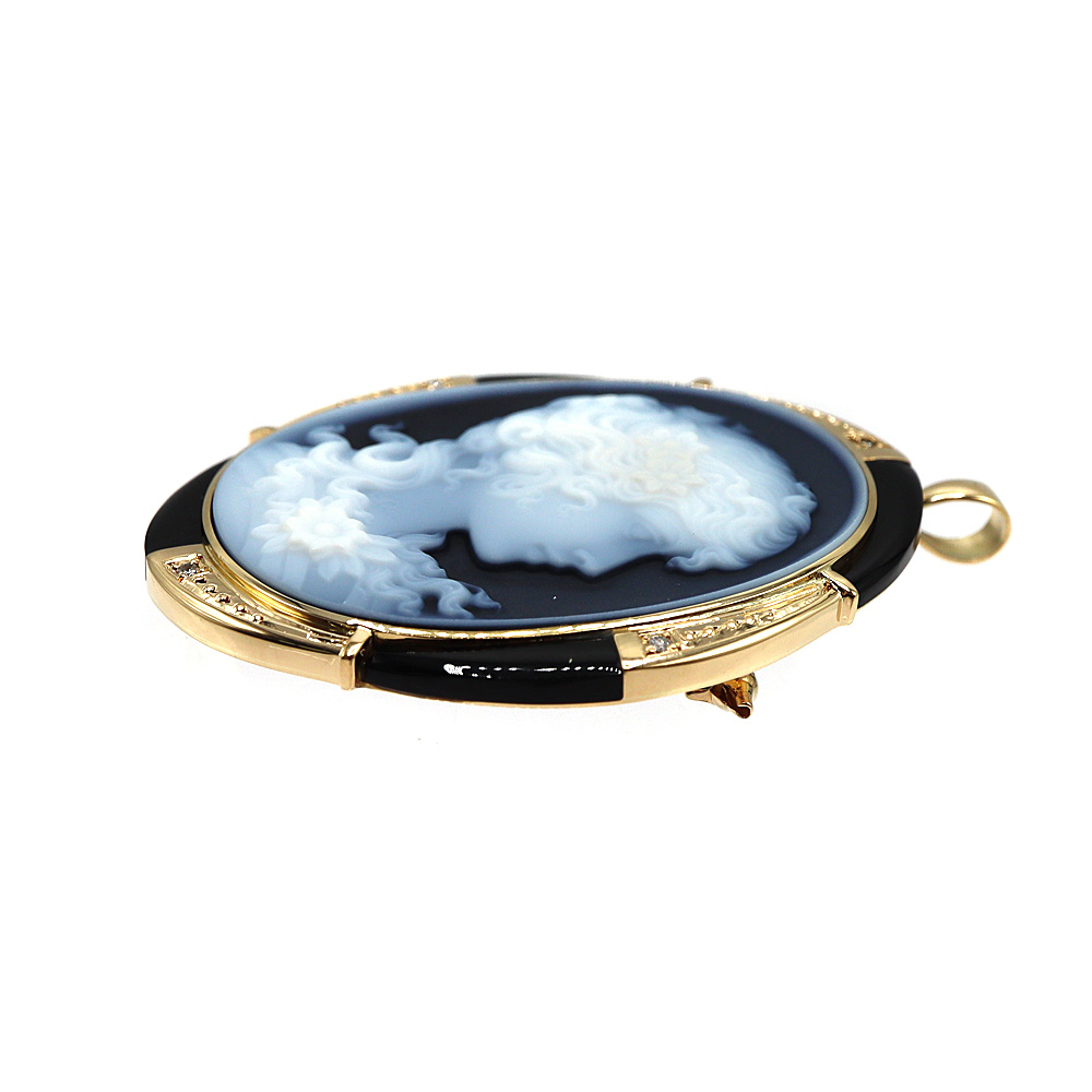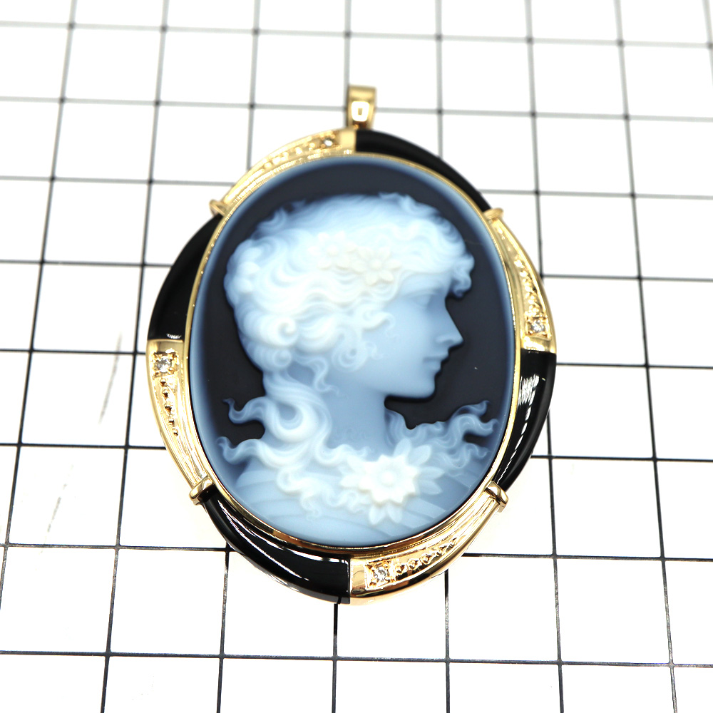 繊細に彫刻されたカメオに、ダイヤモンドを添えた上品なペンダントトップです。